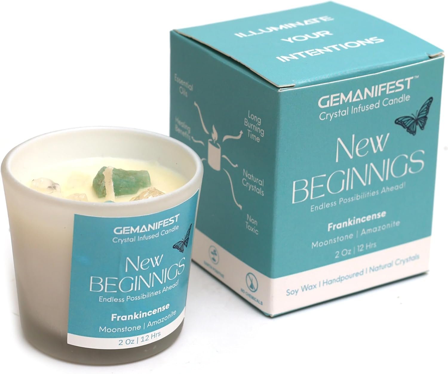 New Beginnings Manifestation Candle Gifts for Women and Men Frankincense Crystal…