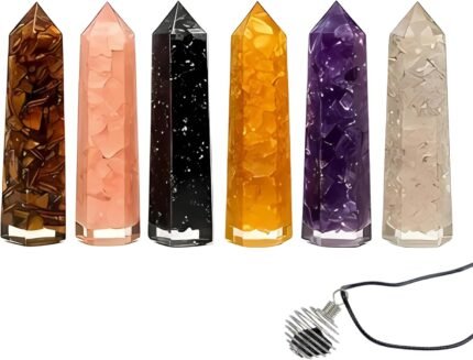 Healing Orgonite Crystal Wand Set of 6 – 3.5” Amethyst, Tiger’s Eye, Rose Quartz…