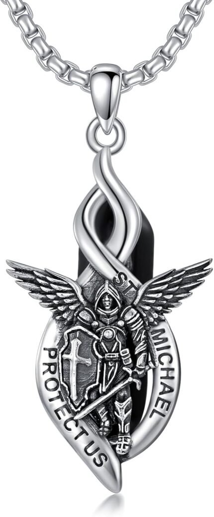 St. Michael Men’s Necklace, 925 Sterling Silver Black Crystal Archangel Michael …