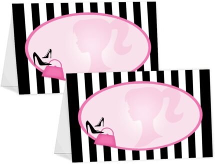 Glamour Girl Buffet Cards Place Cards – 12 Pink Glamour Girl Table Tents – Black…