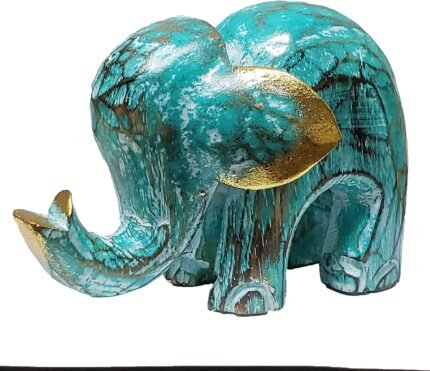 Hand-Carved Wooden Elephant Statue Multicolored (Green, 4 inch)