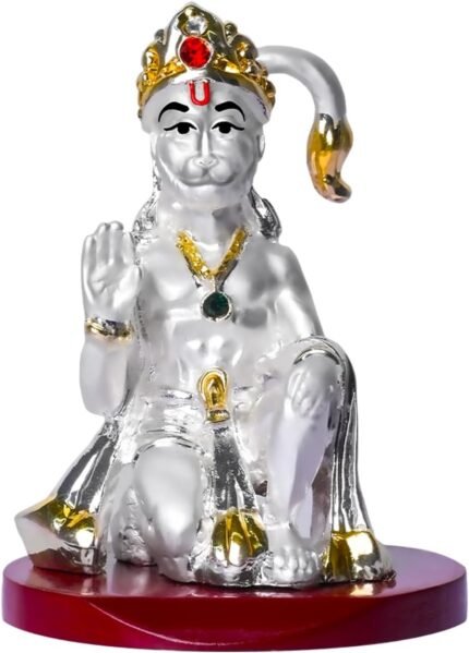 999 Silver Plated Hanuman Ji Decorative Showpiece Idol for Car Dashboard Temple …