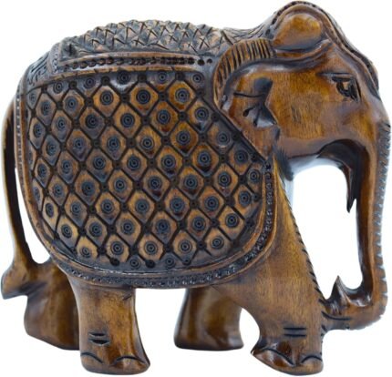 Handcrafted 5″ Wooden Elephant Statue – Intricate Carving, Natural Wood Finish, …