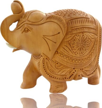 Handcrafted Wooden Statue – Up Trunk Elephant Figurine – Kadam Wood Showpiece – …