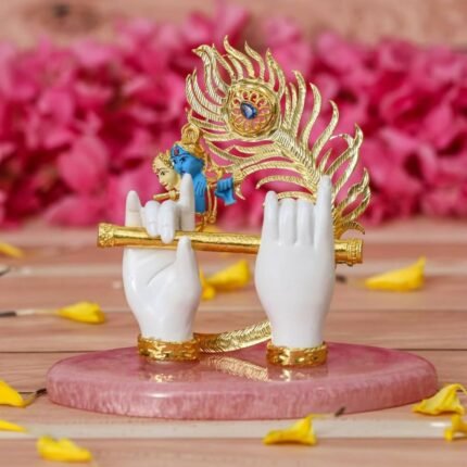 Lord Sri Krishna Hand Idol with Flute & Peacock Feather Statue for Car Dashboard…