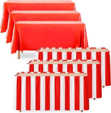 6 PCS Carnival Table Skirt Party Decorations,Red and White Striped Table Skirts,…