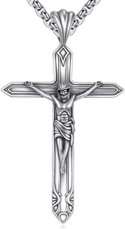 Jesus Cross Necklace for Men 925 Sterling Silver Crucifix Necklace Protection Am…