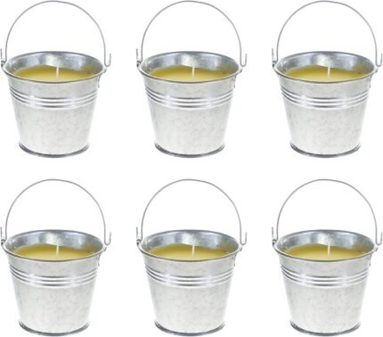 Mega Candles 6 pcs Scented Metal Tin Bucket Citronella Candles, Hand Poured Wax …