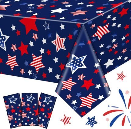Price: (as of – Details) Features: This package includes 3 designed 4th of July tablecloths adorned with a festive blue,