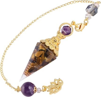 Nupuyai Orgone Crystal Pendulum for Reiki Dowsing Divination, Gold Plated Hand C…