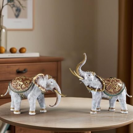 Brass Elephant Statues for Home Decor – Trunk Up & Down Figurines for Wealth, Ha…