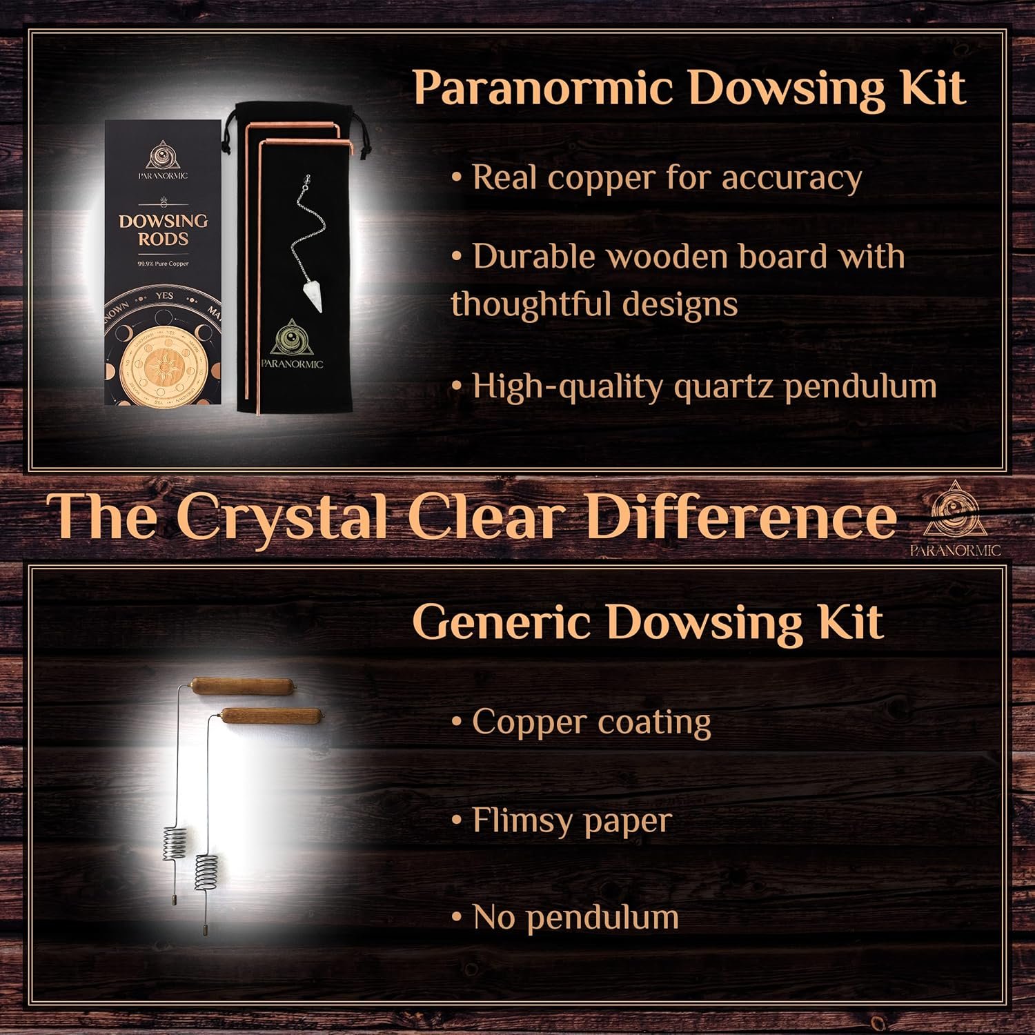 Seek the Intangible – Your kit includes a crystal pendulum, 2 dowsing sticks, and a glorious wooden message pendulum mat. Use Paranormic ghost hunting tools to detect fresh water and metals, tackle spirit ghost hunting, and more.