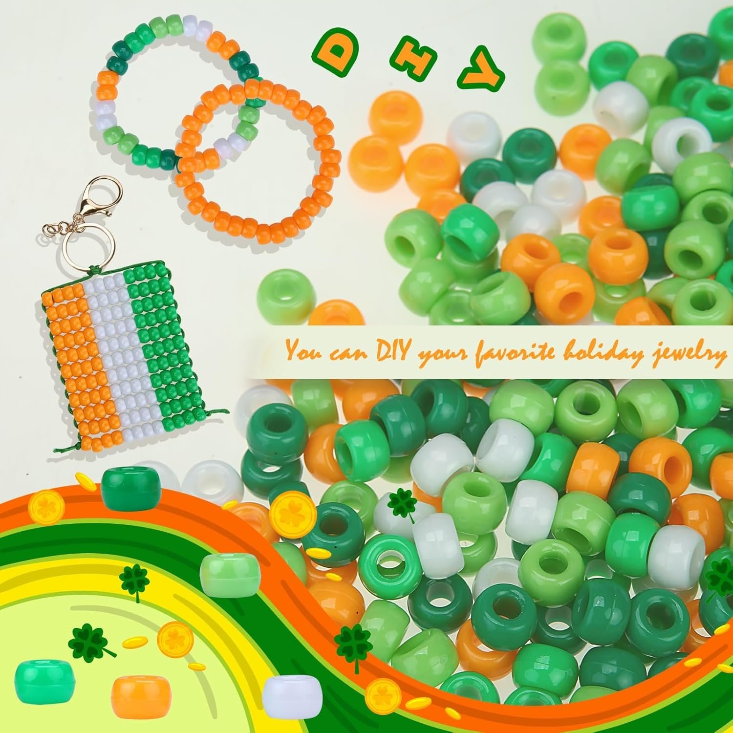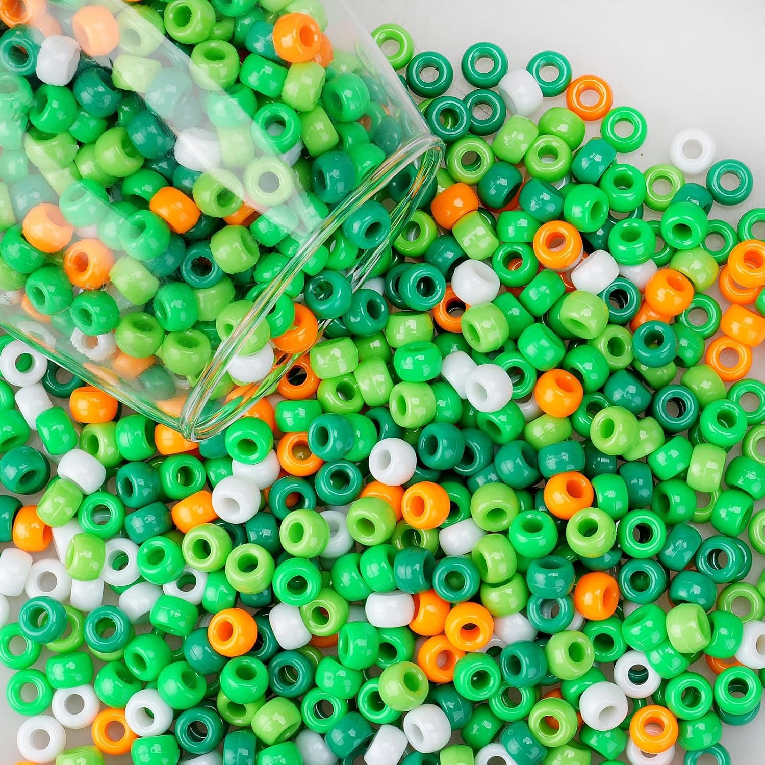 1000PCS St Patricks Day Pony Beads Bulk Green White Orange Pony Beads Loose Bead…