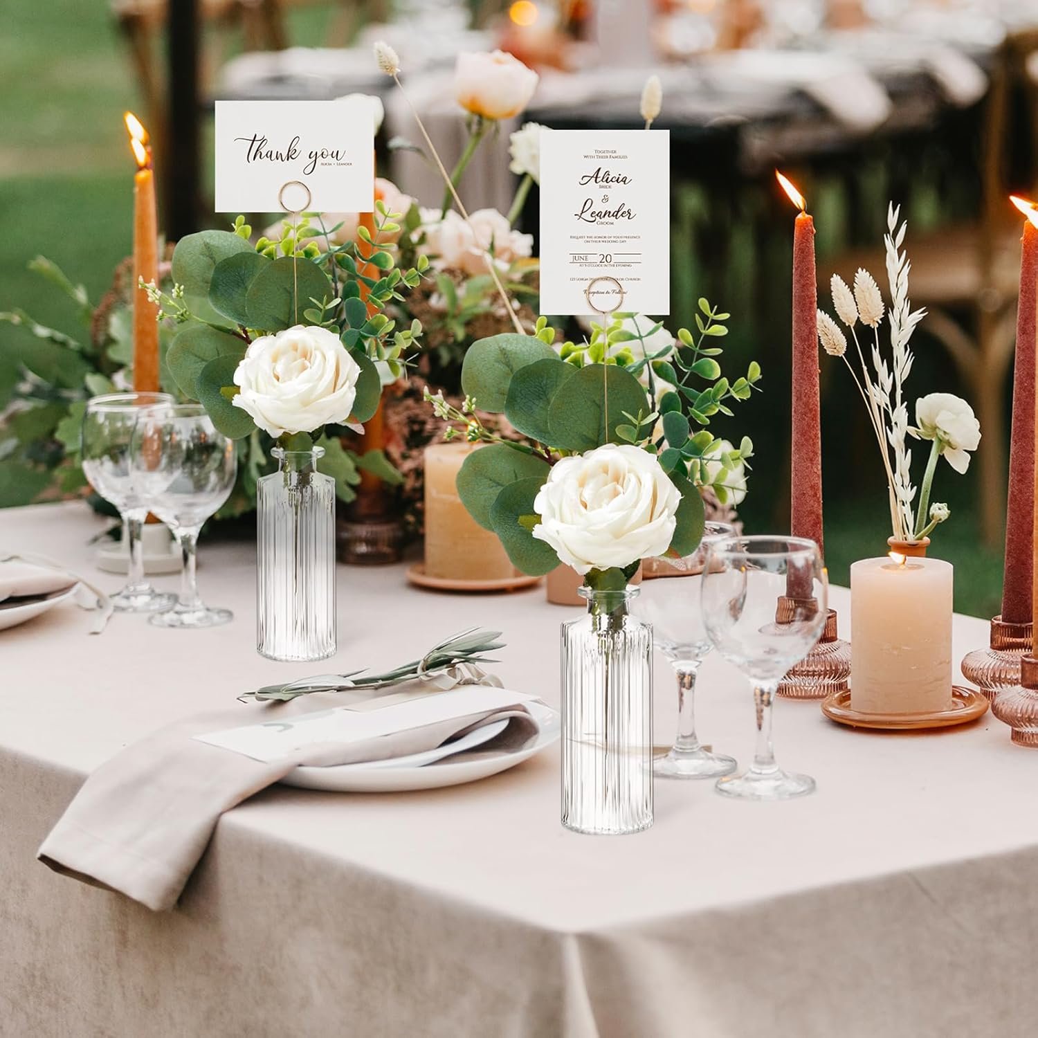 Crafted with quality in mind, the glass vases and iron wire table number holders boast high durability. The faux plants, designed to maintain their lush appearance over time, offer stability ensuring your decor remains stunning for years. Enjoy peace of mind with elements that withstand the test of time and continue to impress.