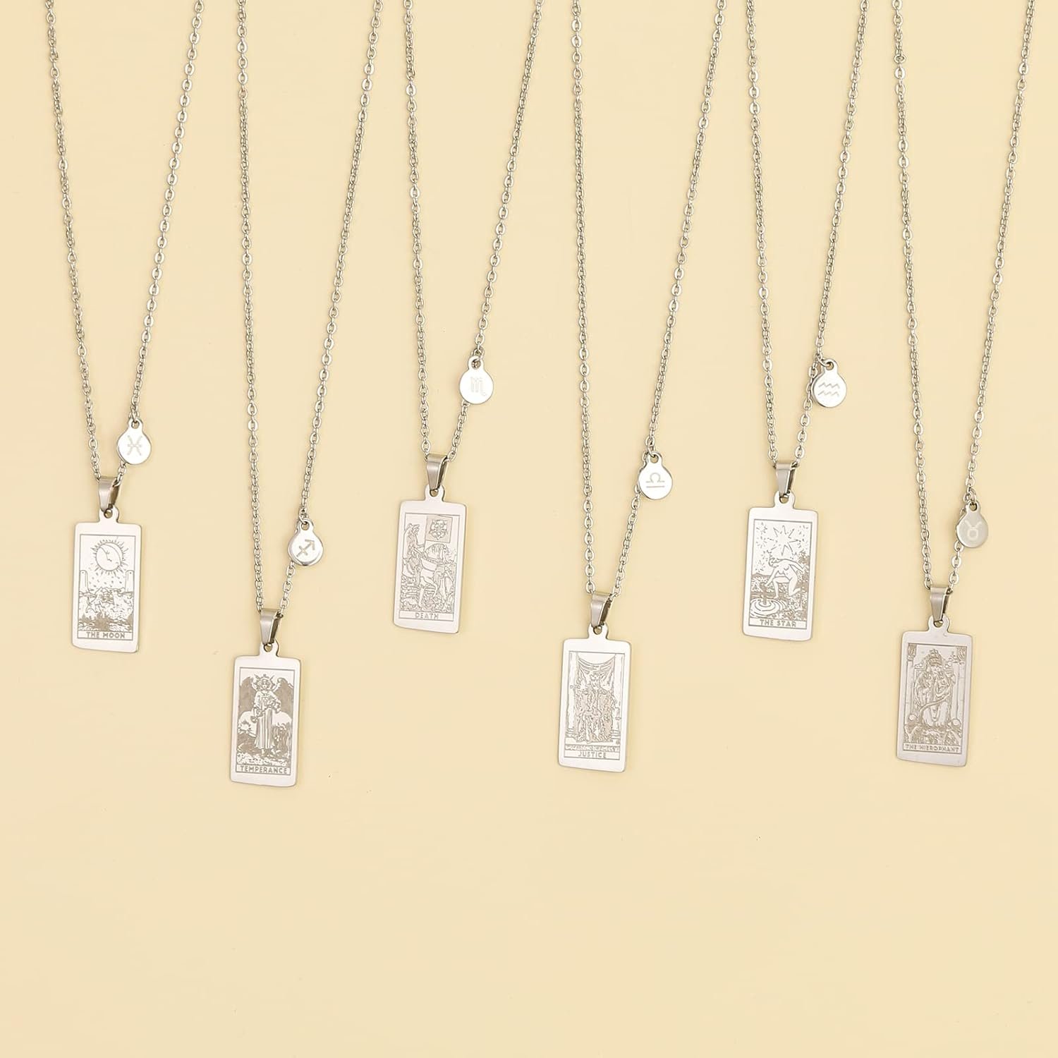 14k Gold Plated Zodiac Sign with Tarot Card Pendant Necklace Birthday Gift for W…