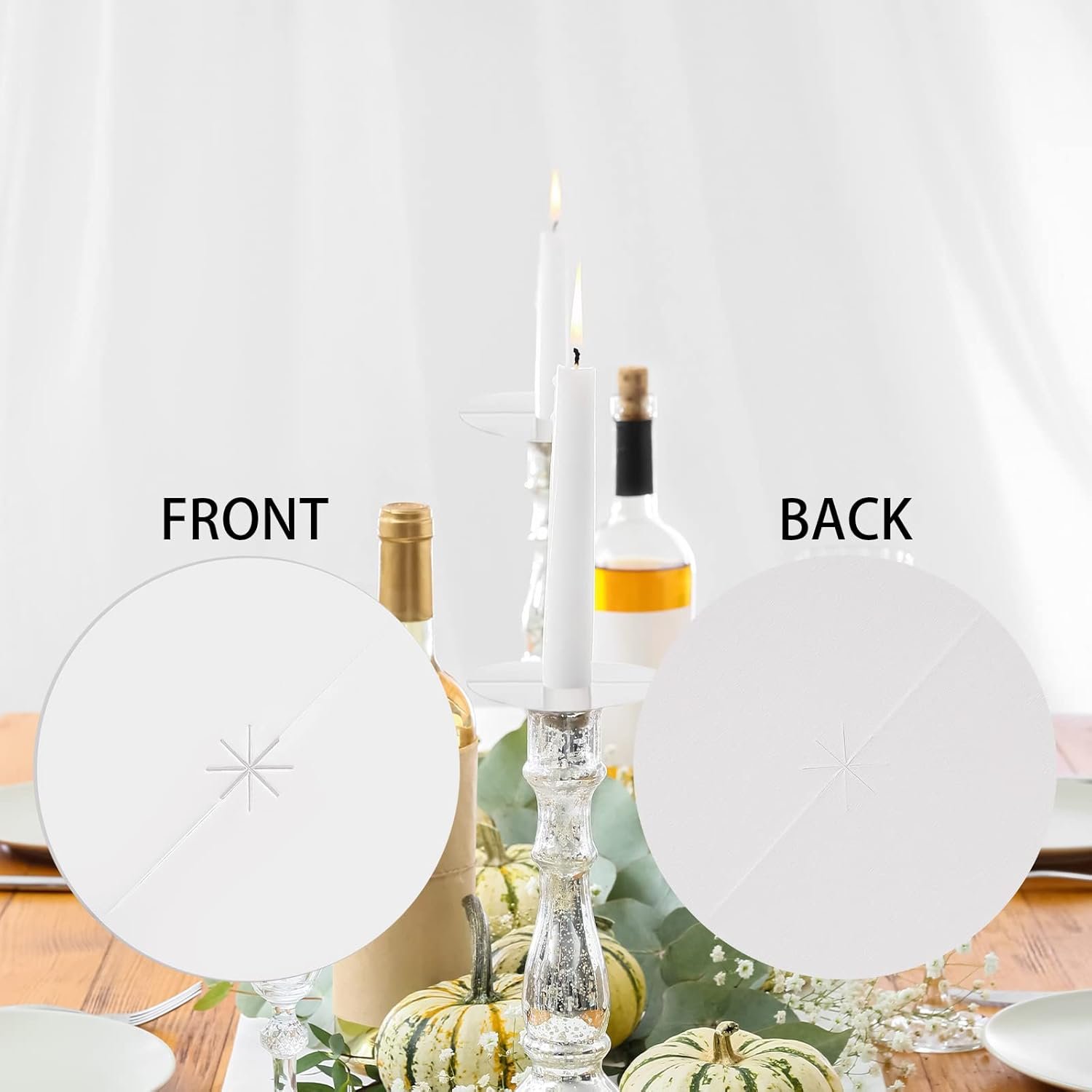 Proper Size to Apply: our candle drip guards are measured about 8 cm/ 3.15 inches in diameter, and the hole diameter is about 16 mm/ 0.63 inch, which can hold the candles more conveniently and accurately; Please check the size before order