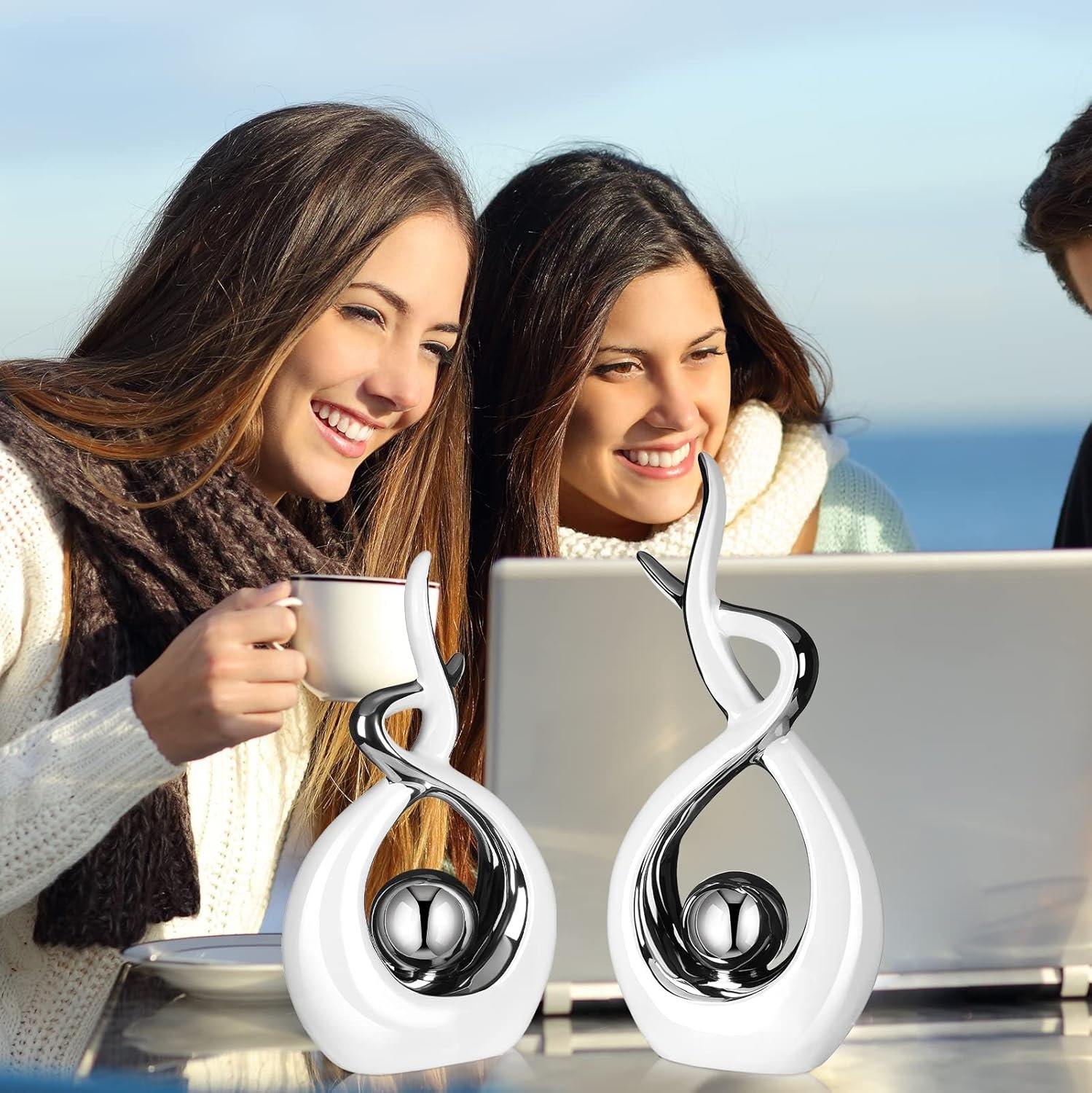 Serviceable and Serviceable: elegant abstract silver home decor is made of quality ceramic material with a smooth surface, they are easy to clean, and the bottom of the statue is designed with soft cushions, placed smoothly without slipping, and also to avoid scratching furniture
