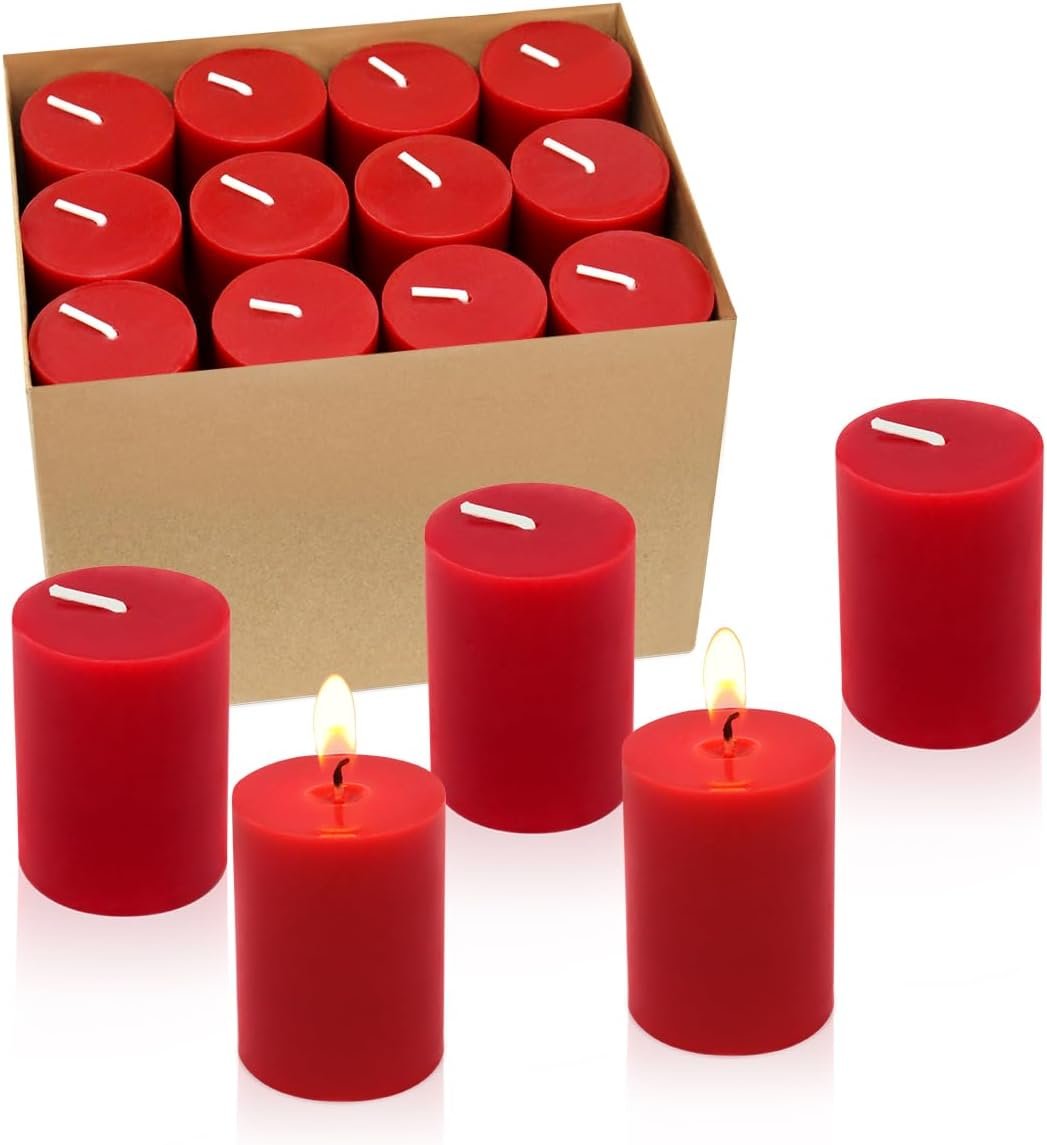 24 Packs Red Votive Candles, Small 2.0 Inch Unscented Wax Solid Colored Candles …