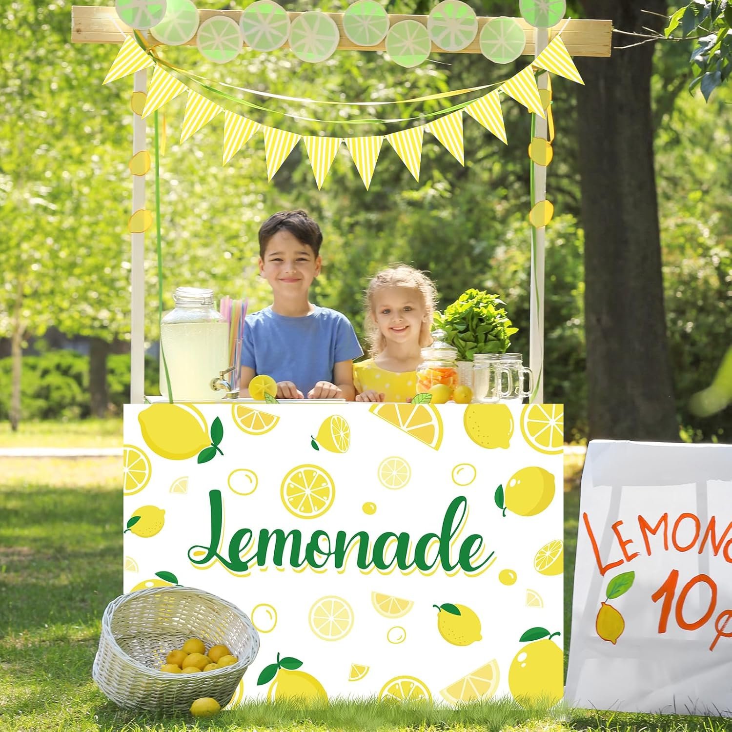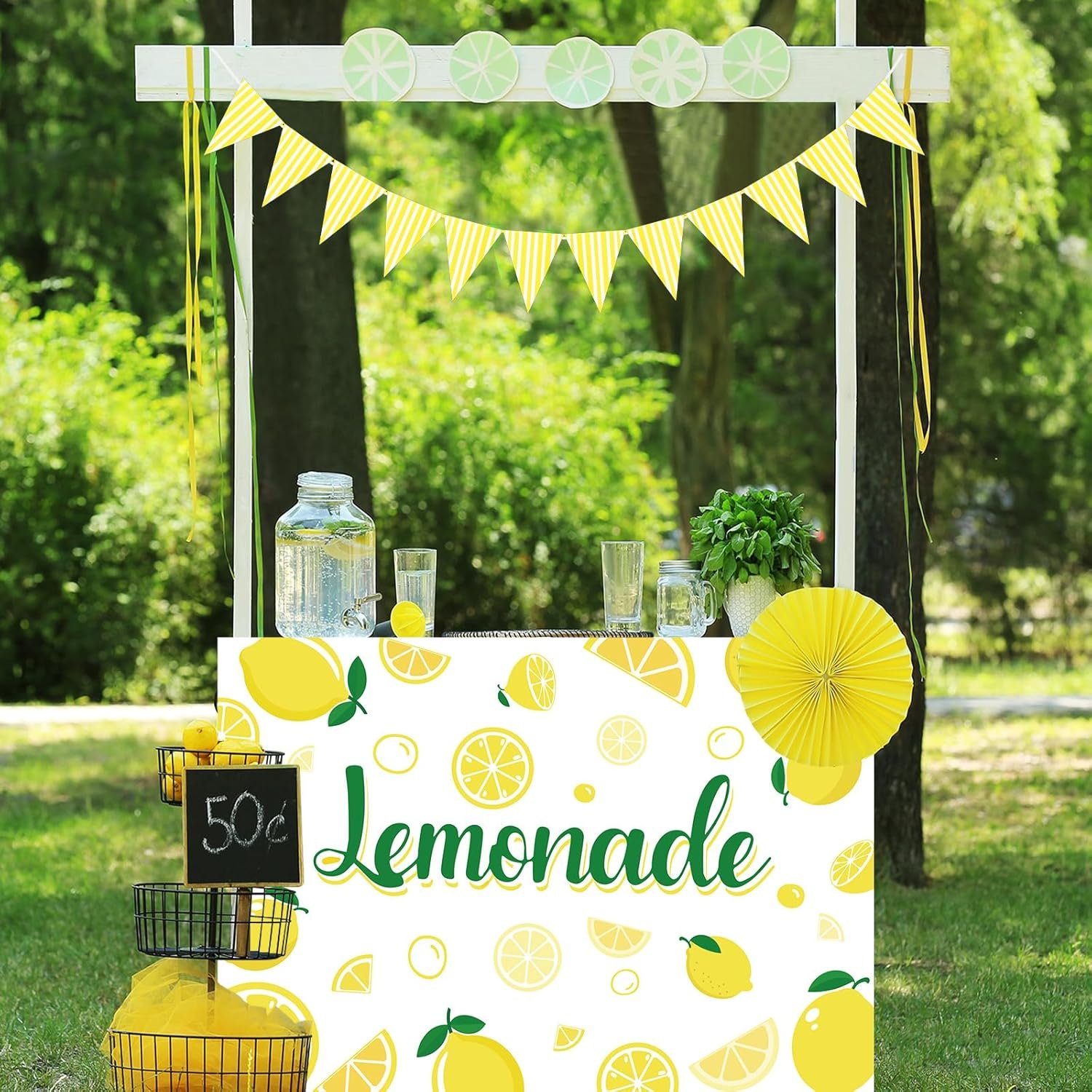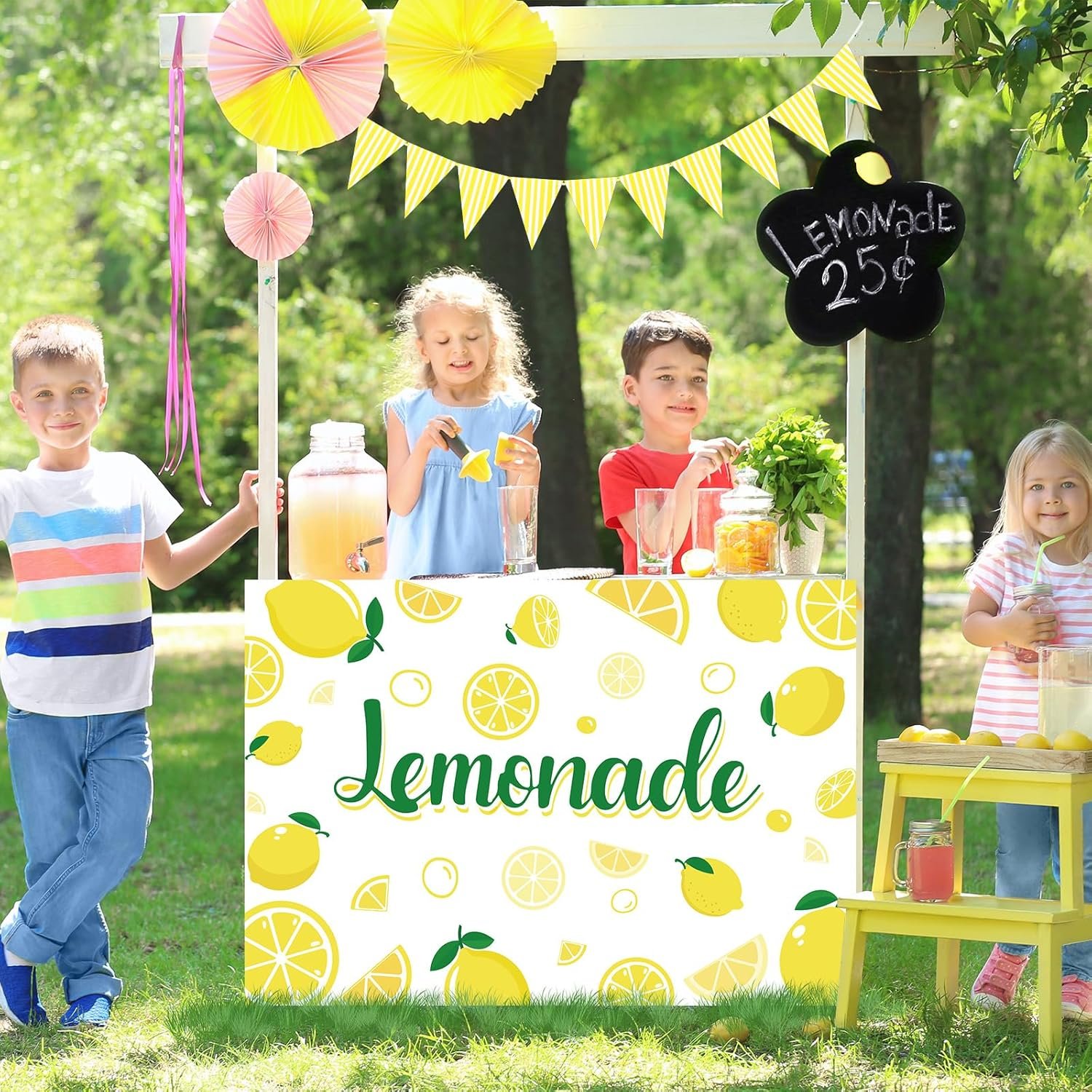 Premium material: Crafted from high-quality polyester, the lemonade stand table cover are durable, lightweight, and resistant to spills and stains. Easy to clean—just machine wash and tumble dry on low heat. The yellow hanging banner is crafted from thick, sturdy paper for lasting use.