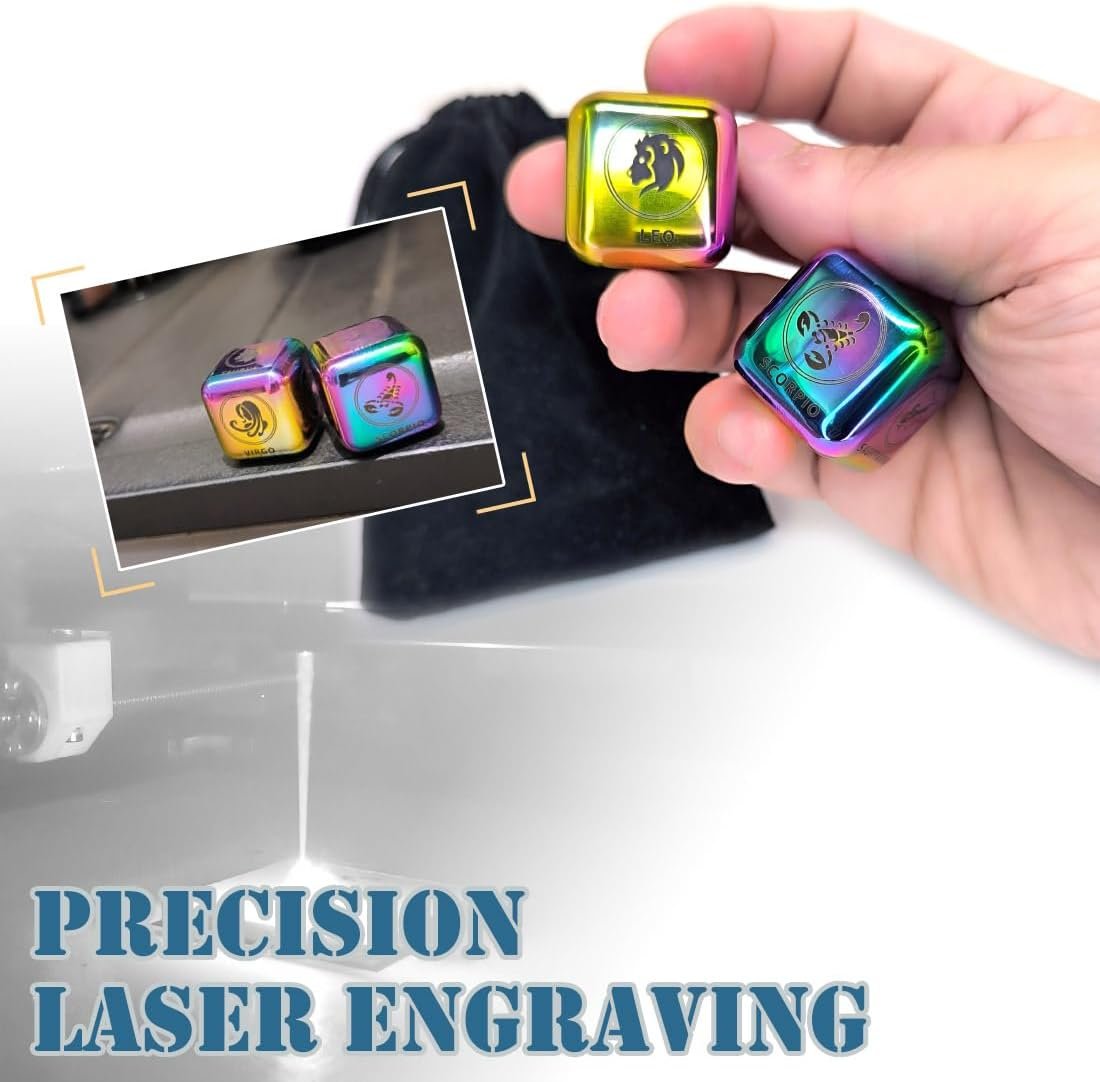 Laser Engraved for Lasting Beauty: Featuring intricate Zodiac patterns laser-engraved into the metal surface, these dice offer durability and fadeless. The precision engraving ensures that the patterns remain vibrant and legible, ensuring a lifetime of enjoyment.
