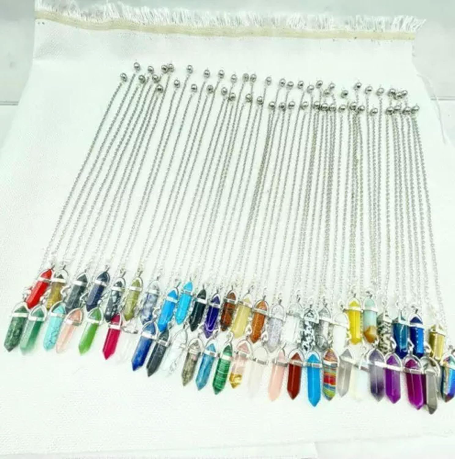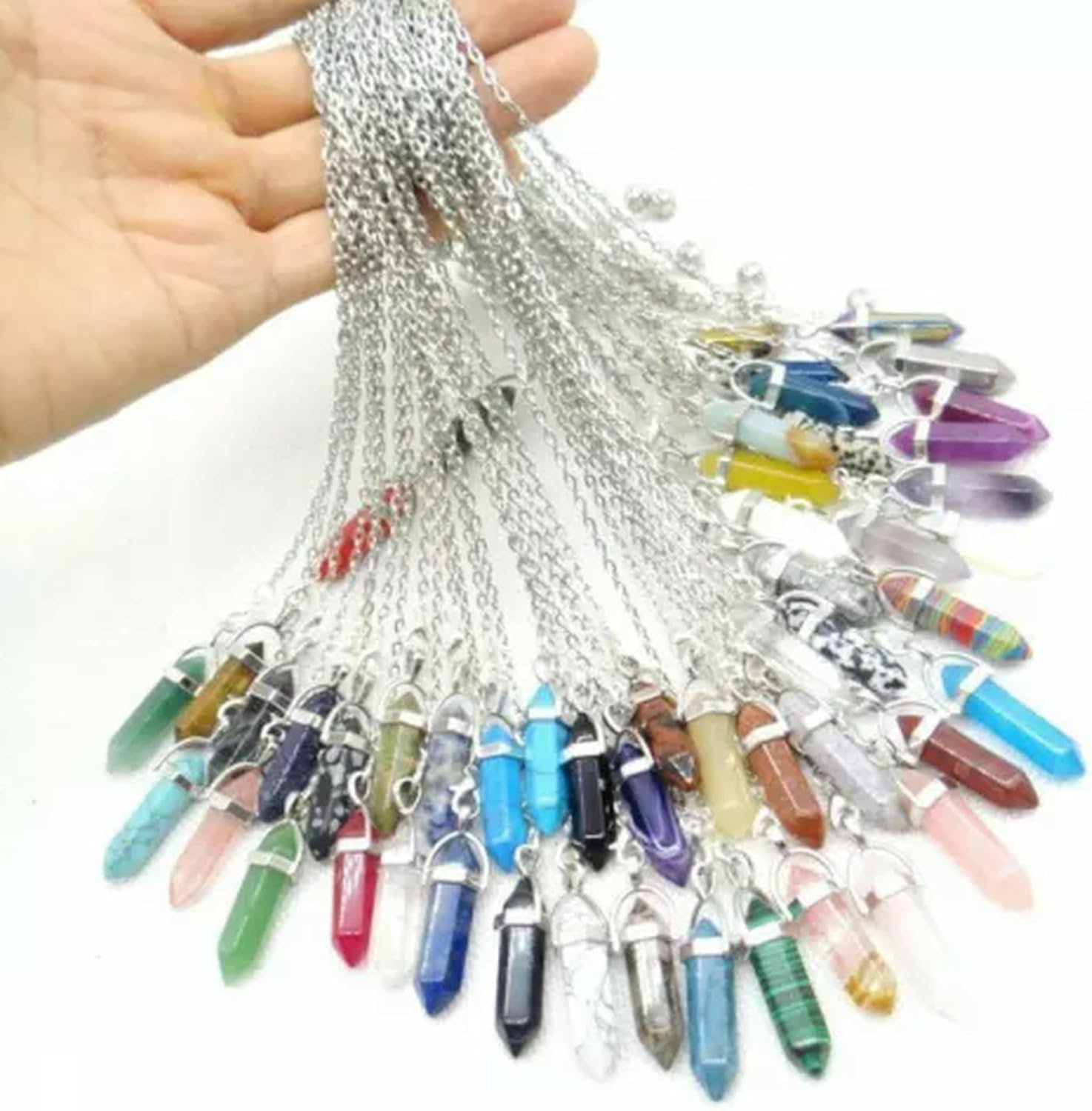 30PCS Natural Stone Quartz Crystal Chain Pendulum Pendant-30pcs Silver Chain