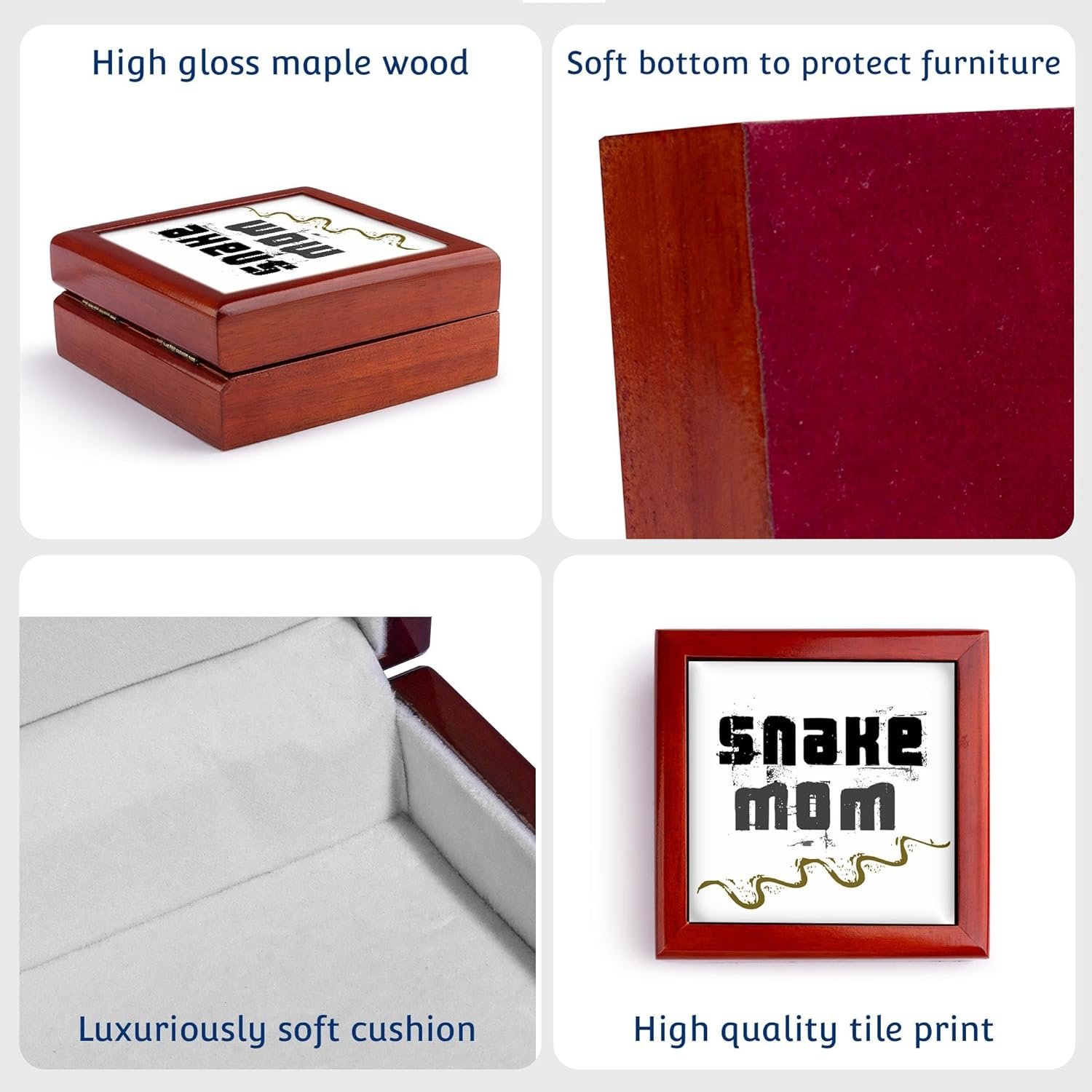 MULTIPURPOSE DISEIGN: These decorative boxes with lids are more than simple pieces of home décor. They are a great option for storing jewelry, pictures, small accessories. Decorative design 4″ x 4″ gloss ceramic tile set in high gloss maple wood.