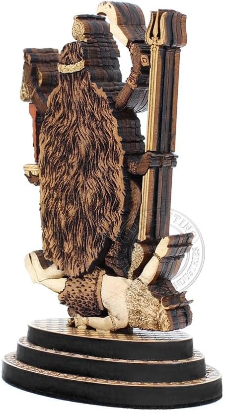 Pleasantino presents the Maa Kaali statue an artwork of wood marquetry. Made of more than 40 individual solid wooden parts, affixed on multiple layers of wood to give a 3D look. Each small part is carved out of Padauk wood, Maple Wood, and Boxwood and then hand-assembled in a particular order to make a complete figurine.