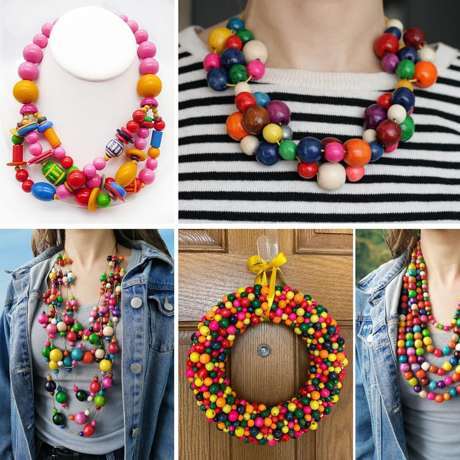 【Widely Used】Great for DIY craft project, jewelry making and decorations. Such as bracelet, necklace, earrings, bead garland, stylish jewelry, festival pendant, bead chandeliers, tiered tray decorations curtain tieback, wood beaded coasters, macrame, accessory, Christams, Halloween, festival, wedding, party and home decoration, etc