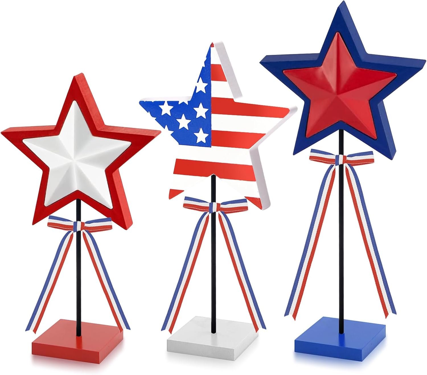 🔴Crafted with Care & Precision: Our fourth July premium stars shine with meticulous craftsmanship, measuring 4 inches wide, now set on a more stable 2.8-inch square base, and boasting a thickness of 0.5 inches. These are the ideal sizes for making a statement in any space, whether you’re honoring Memorial Day or just showing off your patriotic spirit.