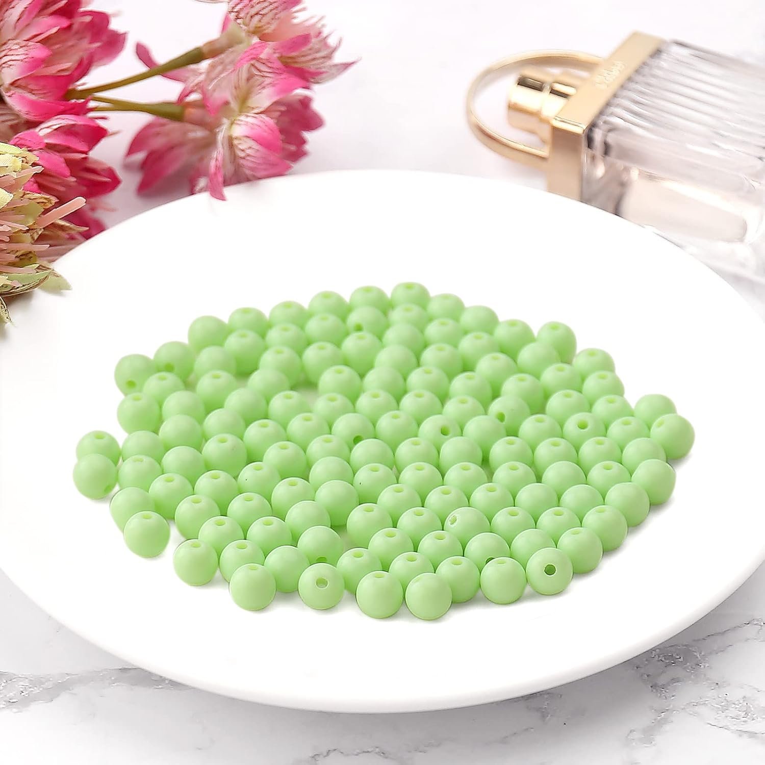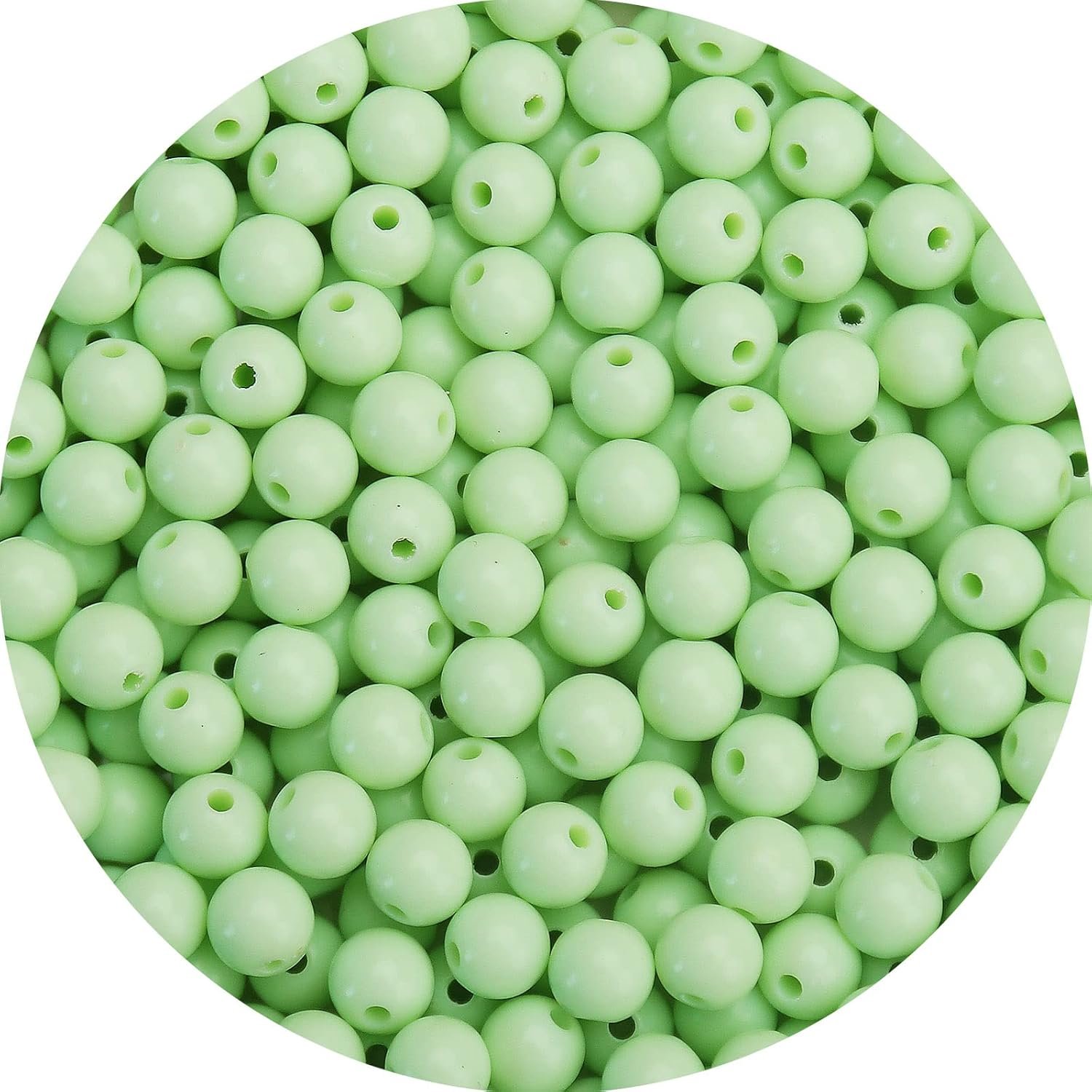 SIZE & COLOR – About 8mm in diameter, hole: 2mm. The color is Smooth Green (These acrylic beads are available in a wide assortment of vivid colors).