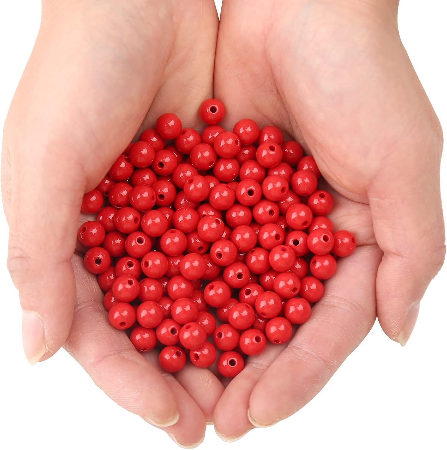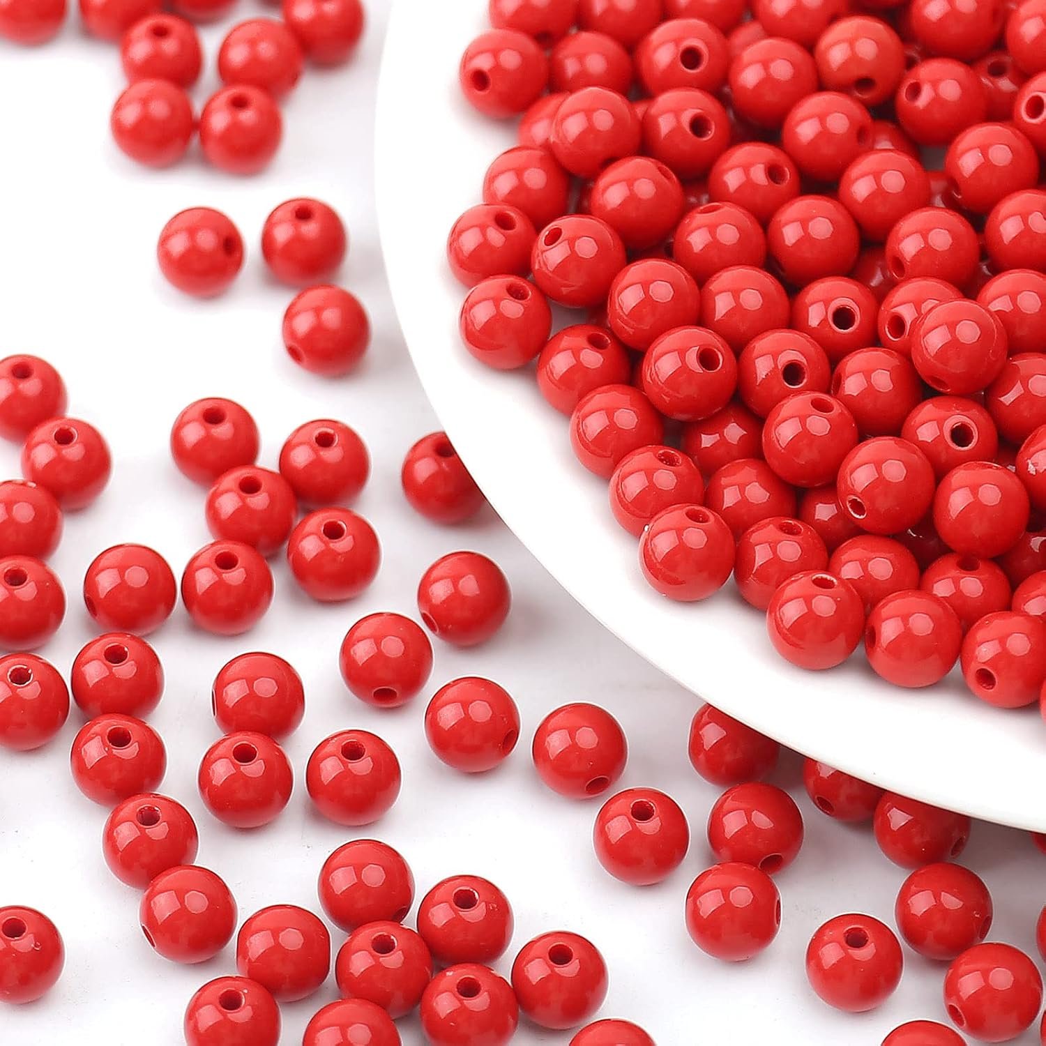500PCs 8MM Smooth Red Acrylic Round Beads for Necklace and Bracelet Making, Craf…