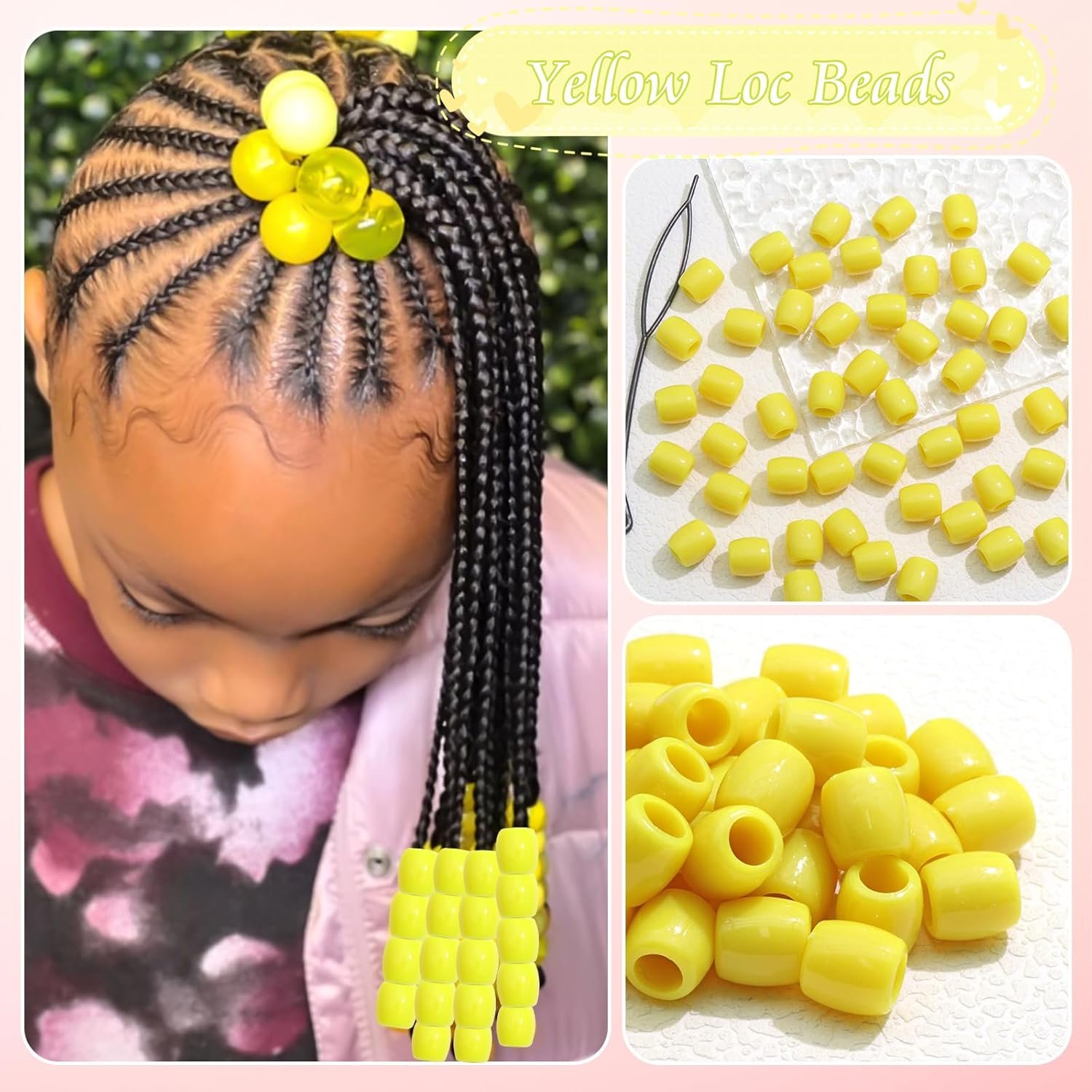 Be the first to review “50PCS Yellow Dreadlock Beads Acrylic Loc Beads Cute Braids Decoration for Girls …”