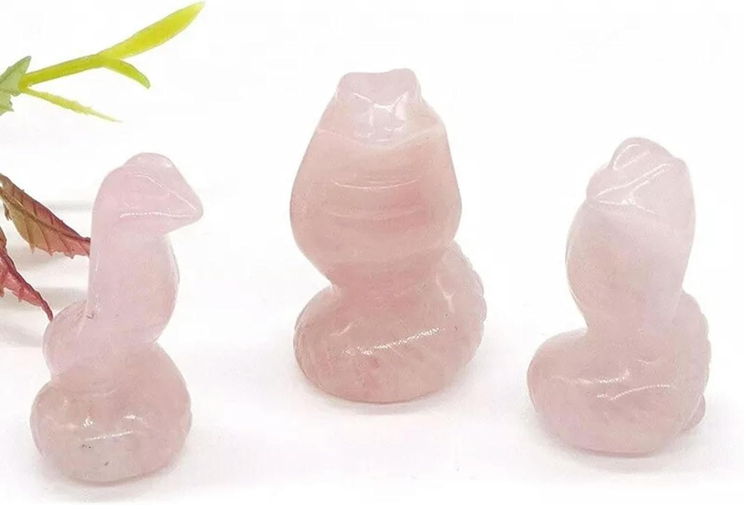 5Pcs Natural Rose Quartz Crystal Carved Snake Serpent Stone Decor