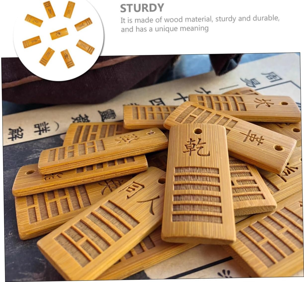 Wooden divination card:these divination cards are great addition to chinese style costume prediction supplies, workmanship, unique chic, not easy to fade,wood bagua cards