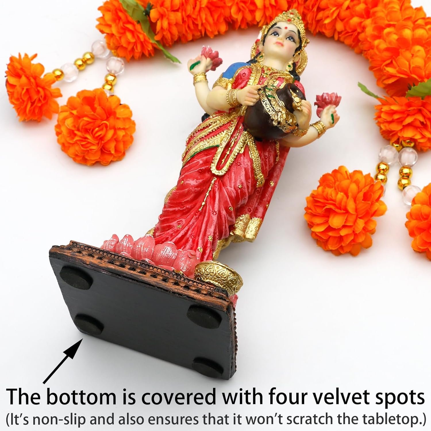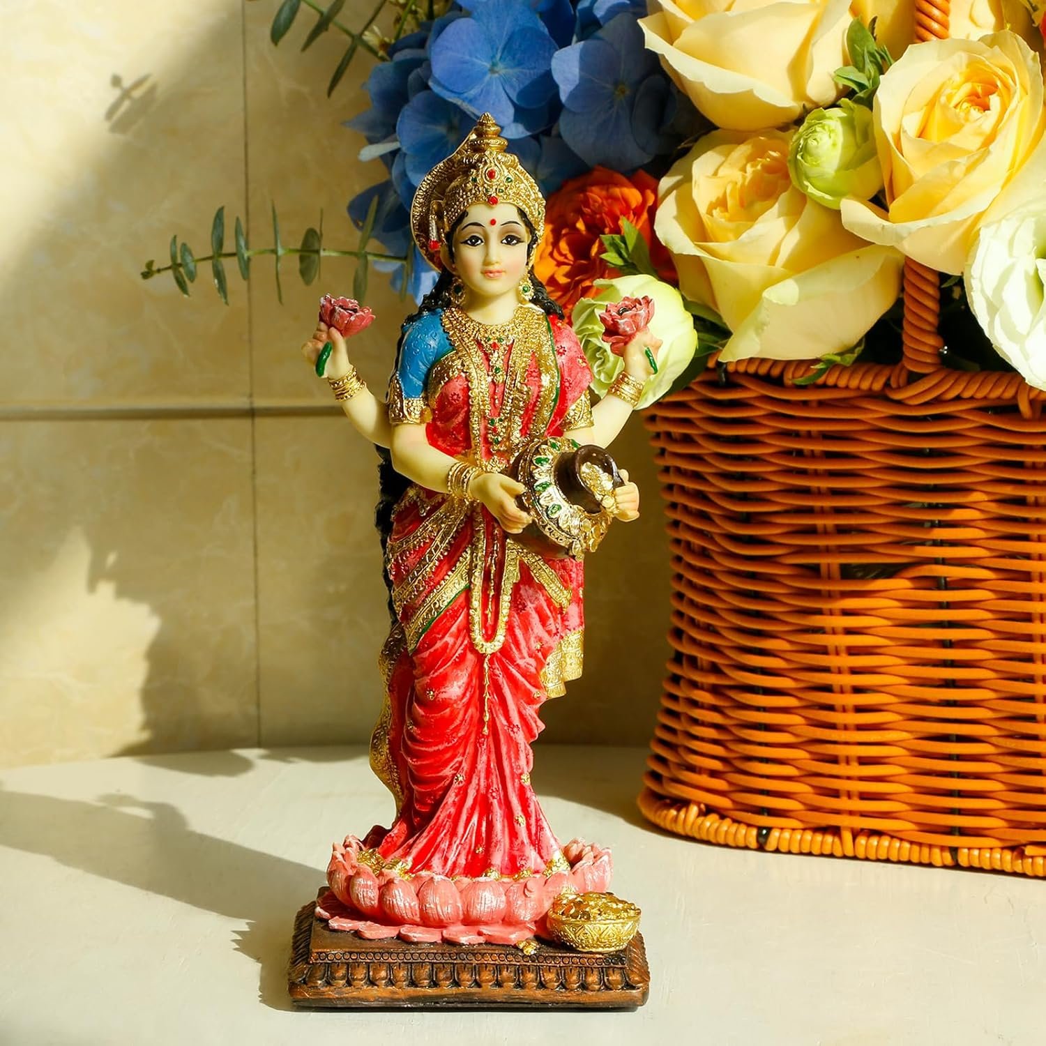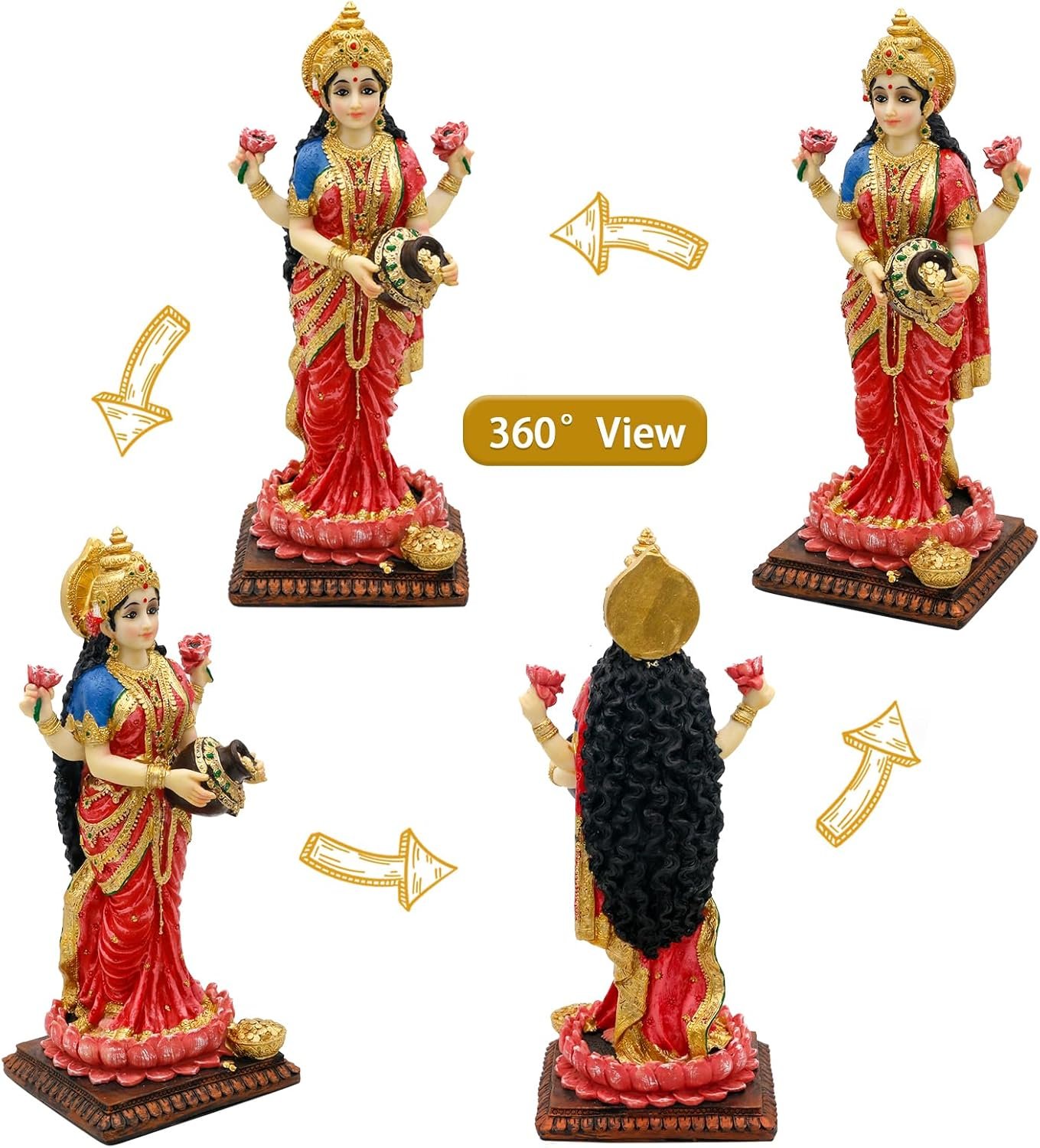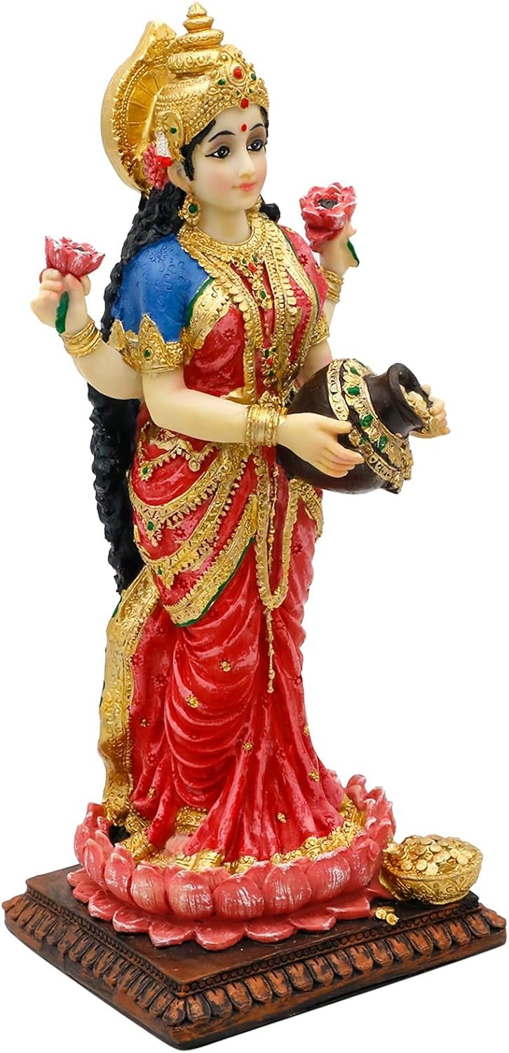 Vibrant and Colorful Hindu God Design: Each Hindu Goddess Laxmi statue is meticulously designed by skilled artists and all the colors are hand-painted, ensuring vibrant colors and intricate details that bring the divine to life,making it a stunning addition to your home office temple mandir altar shrine puja decor.