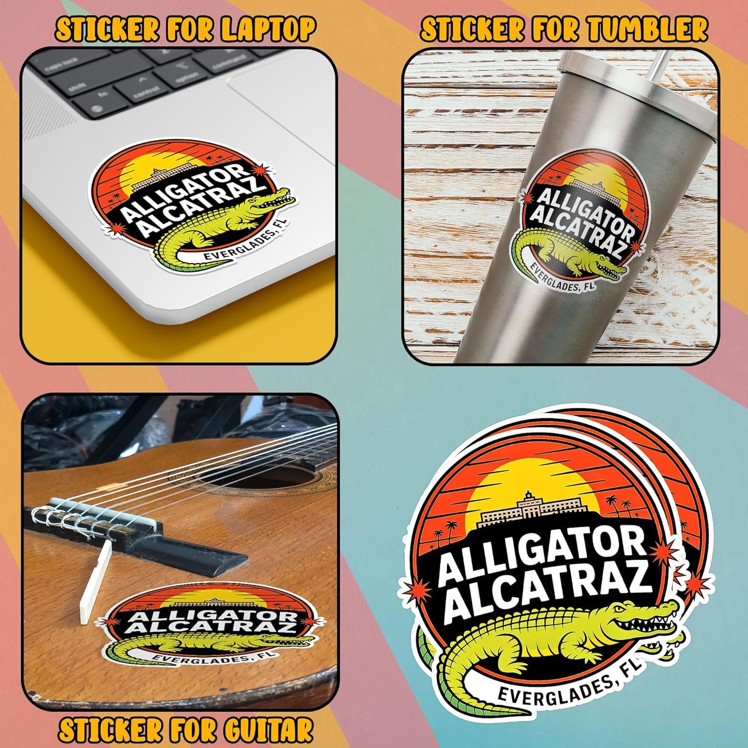 Alligator Alcatraz Everglades Florida Lighthouse detention facility Trendy Meme Decal Sticker For Car Body, Phones, Laptop, Water Bottles, Mug