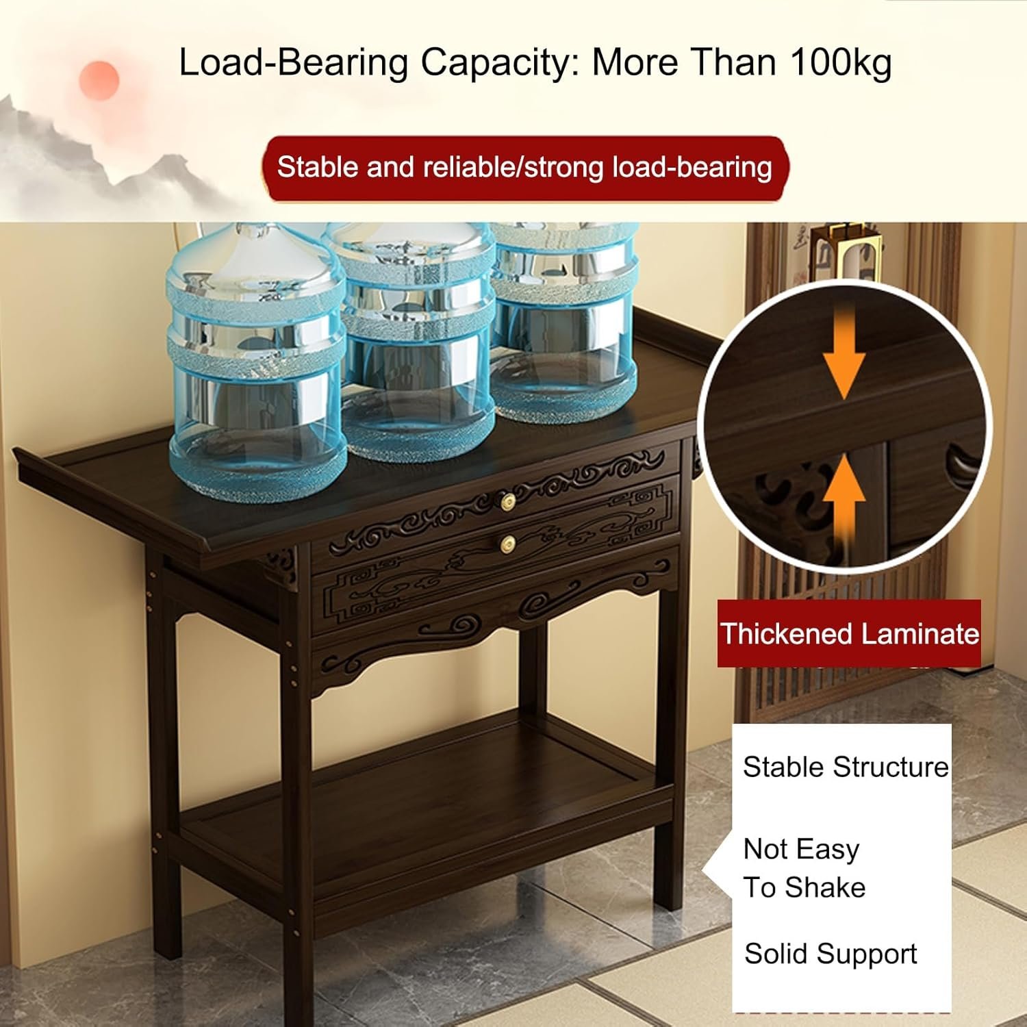 6. The raised edge of the altar table can prevent the offerings or other small items you place from rolling or falling. The drawer handle can open and close the drawer smoothly and conveniently.