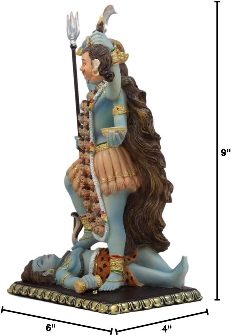 This Hindu Goddess Kali statue is 9″ tall, 6″ wide and 4″ deep approximately.