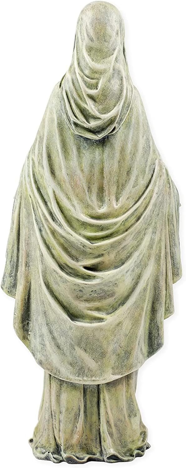 Peaceful and serene Blessed Virgin Mary statue will add beauty to any indoor or outdoor décor Exquisite sculpted features; A lovely faith reminder; Makes a wonderful gift to yourself or others Measures approximately 19.25 x 8 x 4.5 inches; Made of quality resin Perfect for decorating in your home, on your patio, or nestled in a flower bed Contained in protective packaging; Ready for gifting