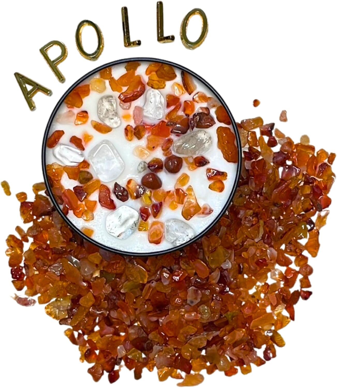 APOLLO, GREEK GOD OF LIGHT Scent: Teakwood, Leather, Sandalwood, Allspice, Amber, Masculine, Soft Gemstones: Quartz, Carnelian Keep your altar aflame with up to 100 hours of burn time.