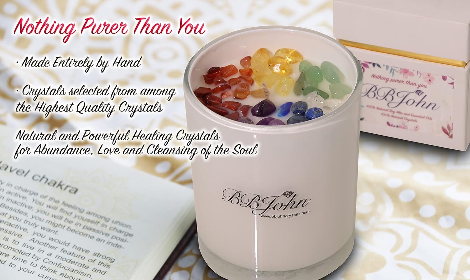 🌸 HIGHT QUALITY AND ECO FRIENDLY: Our luxury 7 chakra Crystal candle by BBJohn is made with 100% pure soy wax and a lead-free cotton wick, providing a cleaner, longer lasting burn. They are infused with natural premium grade fragrances: “Ocean Breeze”, and contain no dyes or paraffin