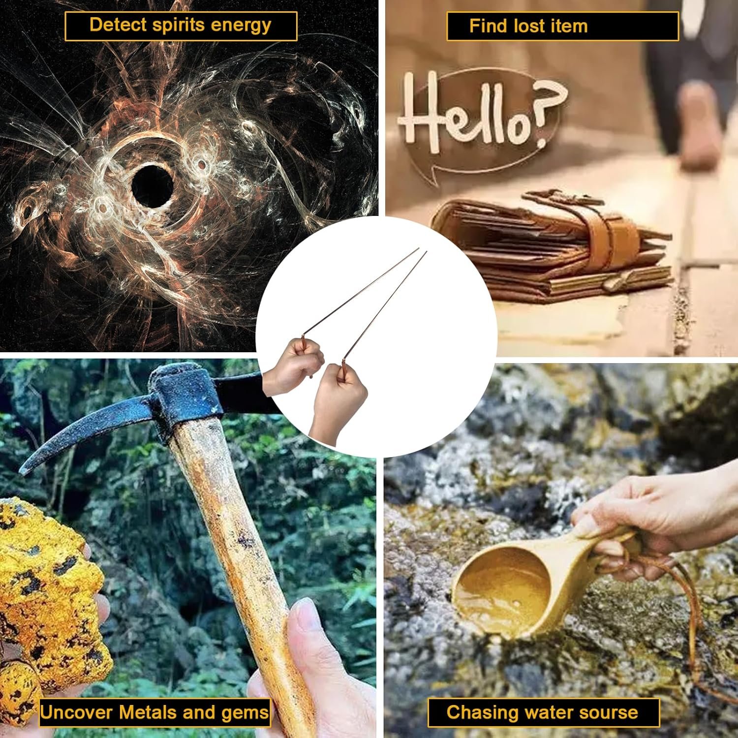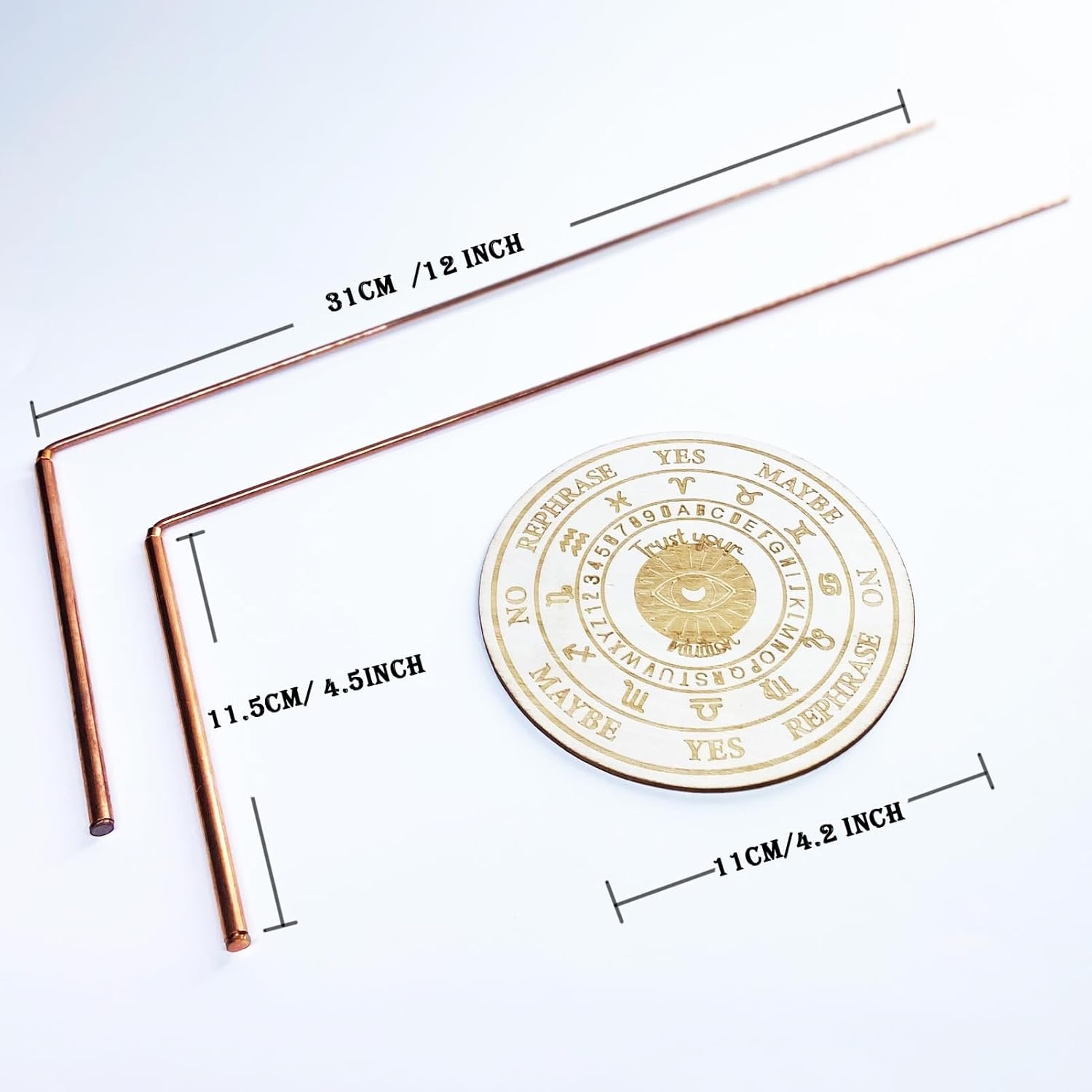 Unlock the mysteries of the universe and expand your spiritual awareness with our Copper Dowsing Rods Spiritual & Pendulum Board Kit.