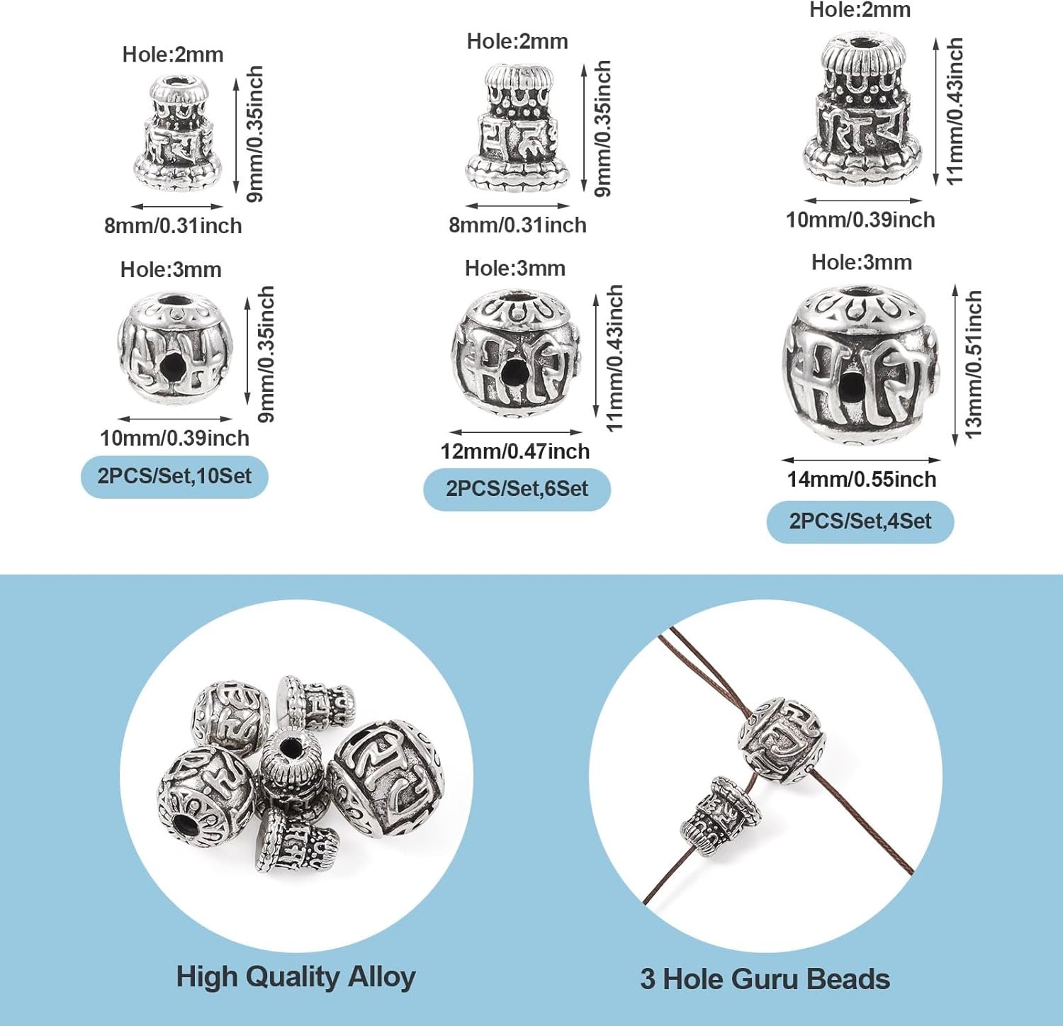 【Package Content】20 sets of 3-hole guru beads (1 set contains 1pc round bead and 1pc bead cap). The round beads are about 10mm /10 sets, 12mm /6 sets and 14mm /4 sets, hole: 2mm.