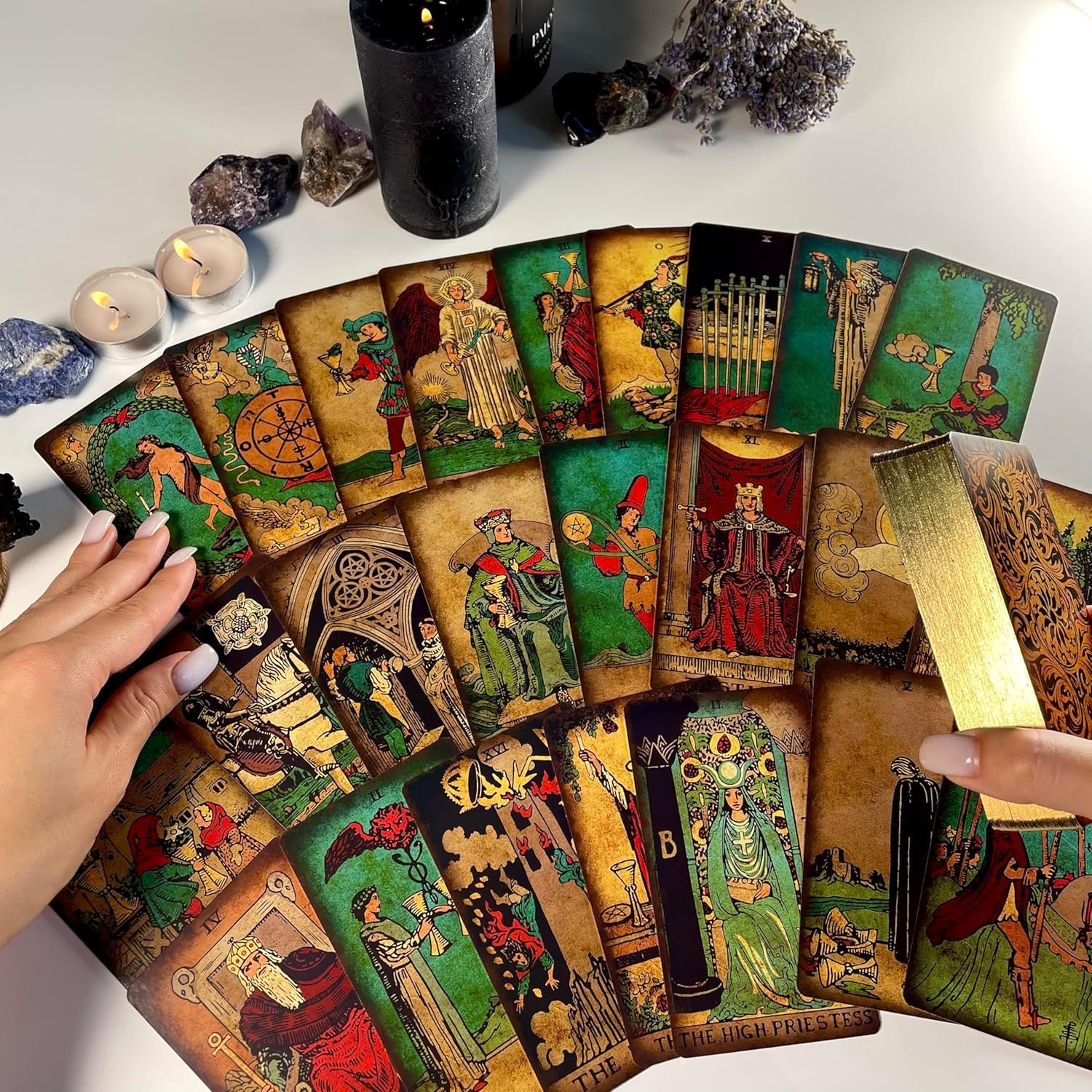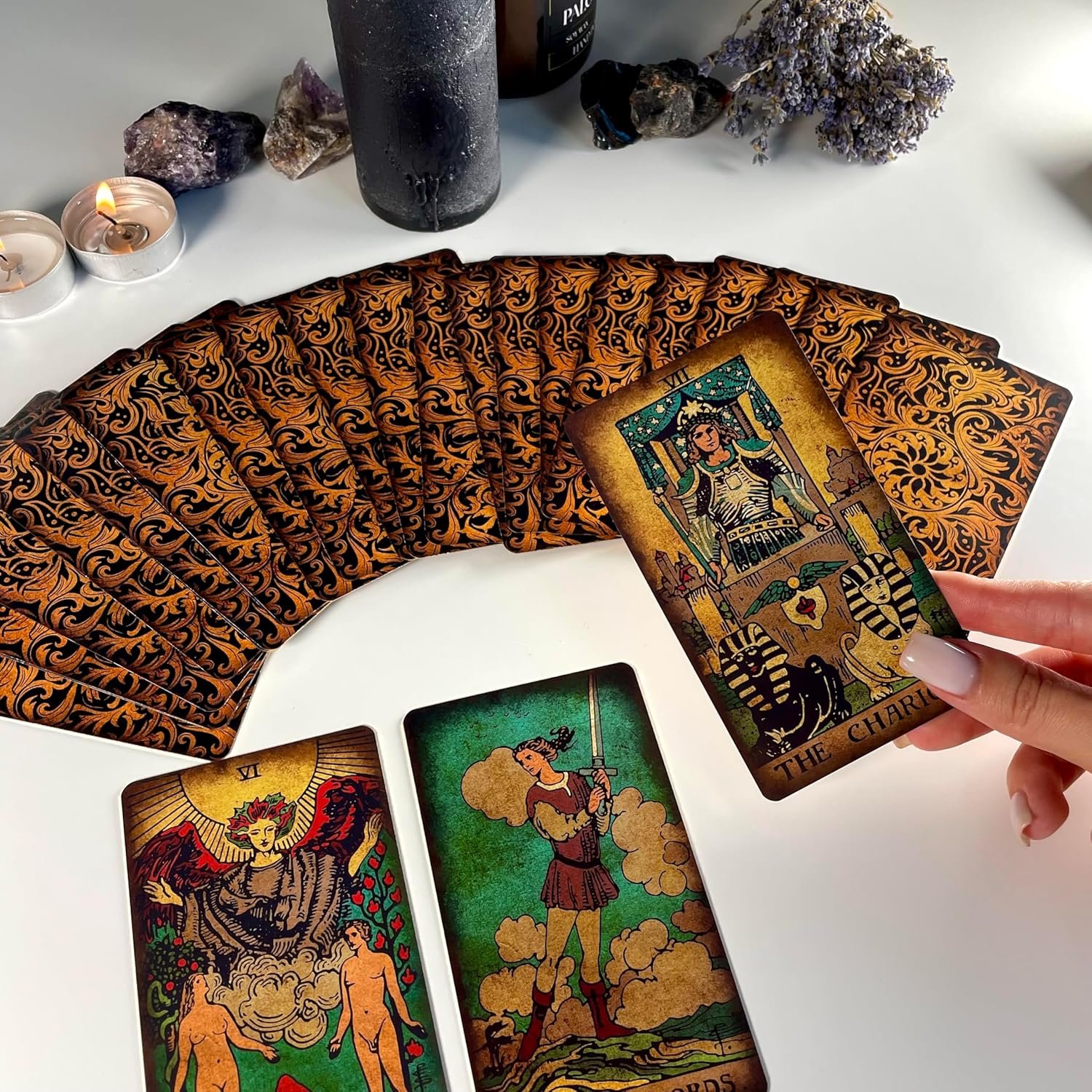 FEEL THE PLEASANT TOUCH – The unique design with clear details and gold foil elements will satisfy anyone looking for a beautiful tarot deck. High-quality glossy lamination and rounded edges make them particularly comfortable and pleasant to the touch during shuffling.