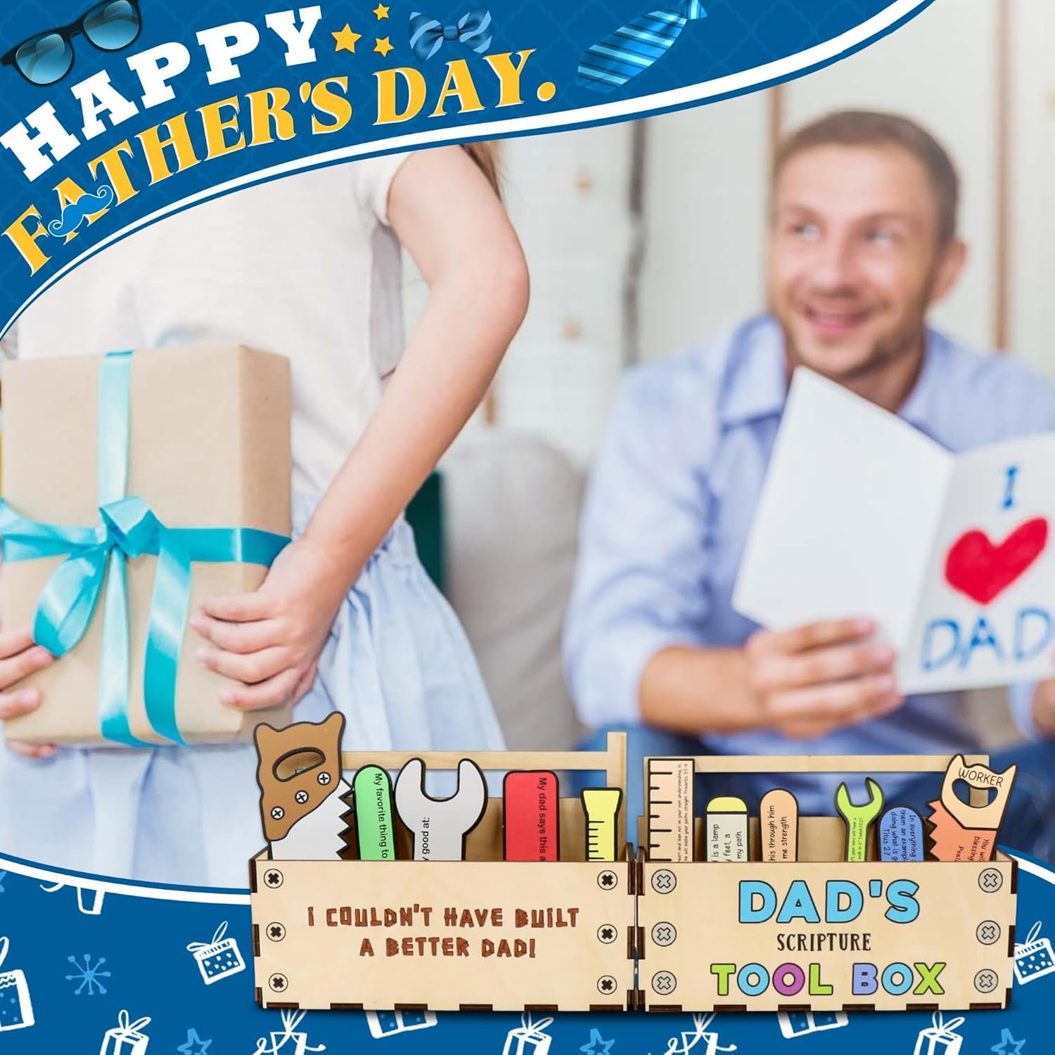 SAFE, MEANINGFUL, AND MADE WITH LOVE: Crafted from 100% premium wood, this dad letter box measures 7.5x4x2 inches and is both lightweight and durable. It features vibrant printing and a heartfelt design, perfect for desks, tables, or office spaces. Ideal as a Father’s Day gift basket from daughter, new dad gift box, or for fathers day gifts delivered today. Dad Toolbox Organization Organizer – Christian Gifts for Dad.