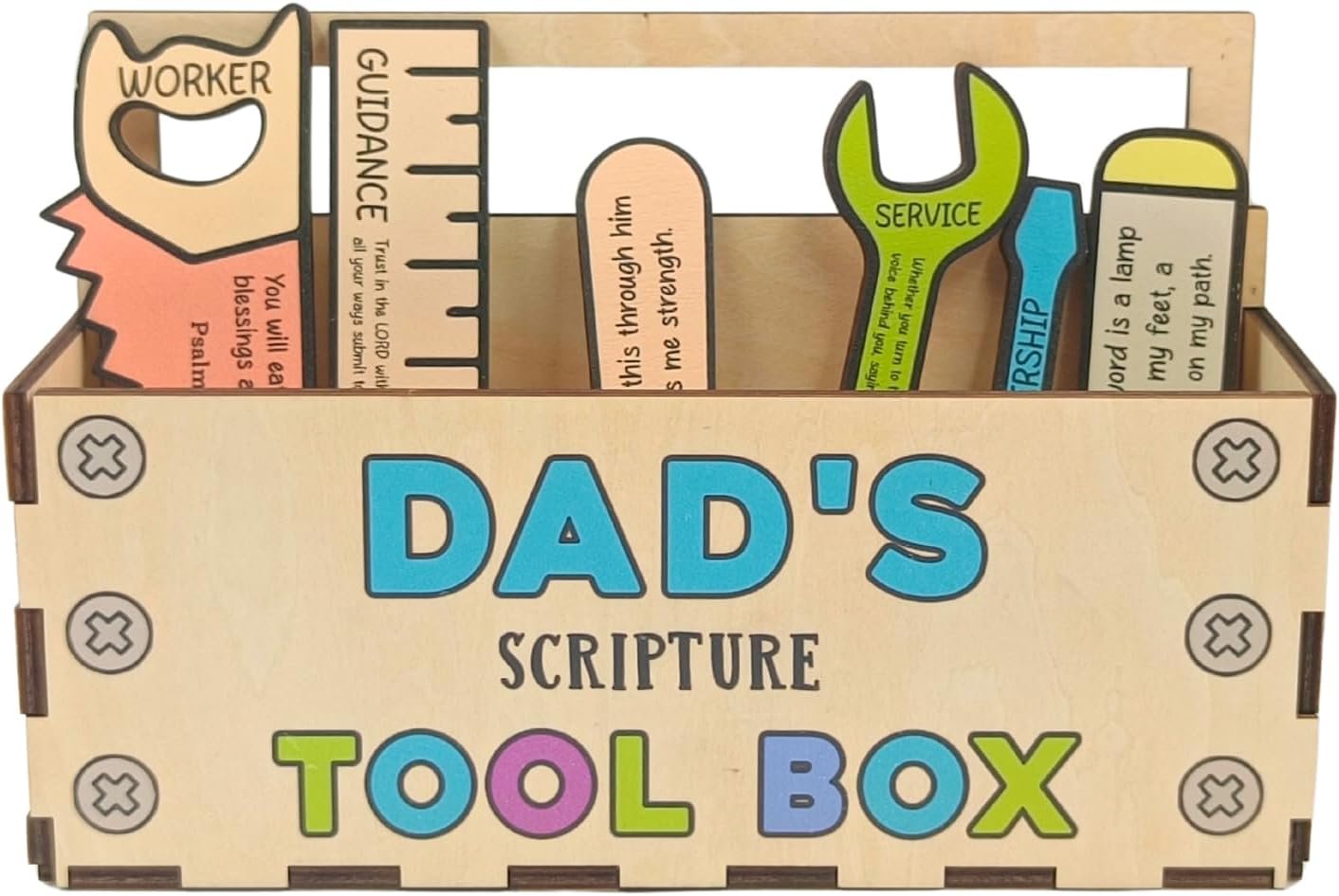 FAITH-INSPIRED DESIGN WITH 6 BIBLE VERSES: This spiritual bible dad toolbox features six cut-out tools, each engraved with powerful Bible verses. It serves as a constant reminder of God’s love, wisdom, and strength—perfect for fathers day prayer, christian fathers day gifts from wife, or anyone seeking religious gifts for dad. A daily source of comfort and prayer.