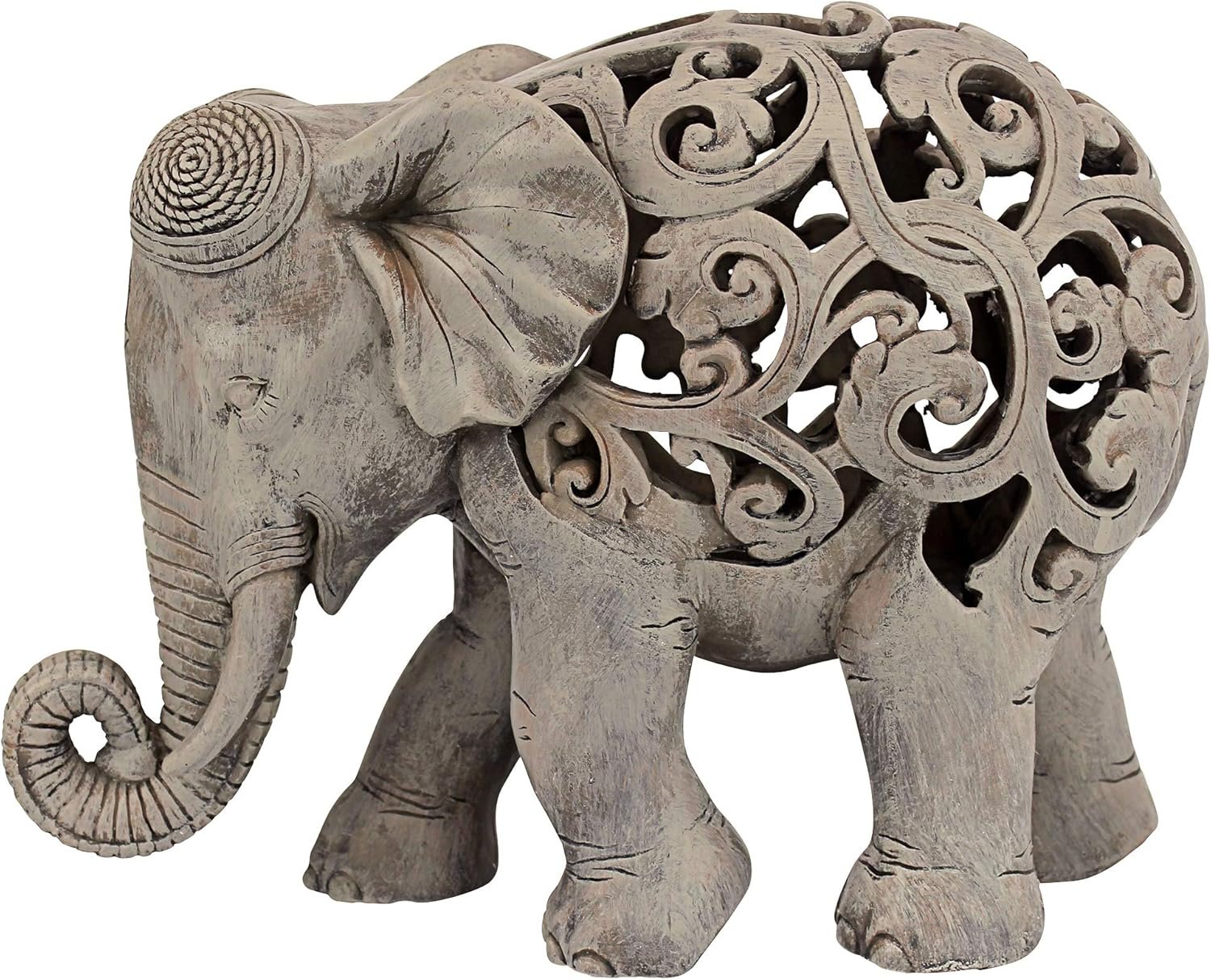 Design Toscano Anjan The Elephant Indian Decor Jali Animal Statue, 12 Inch, Brow…
