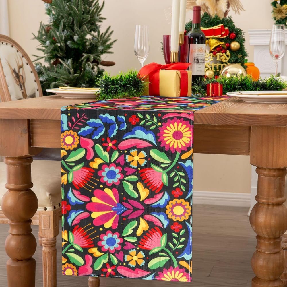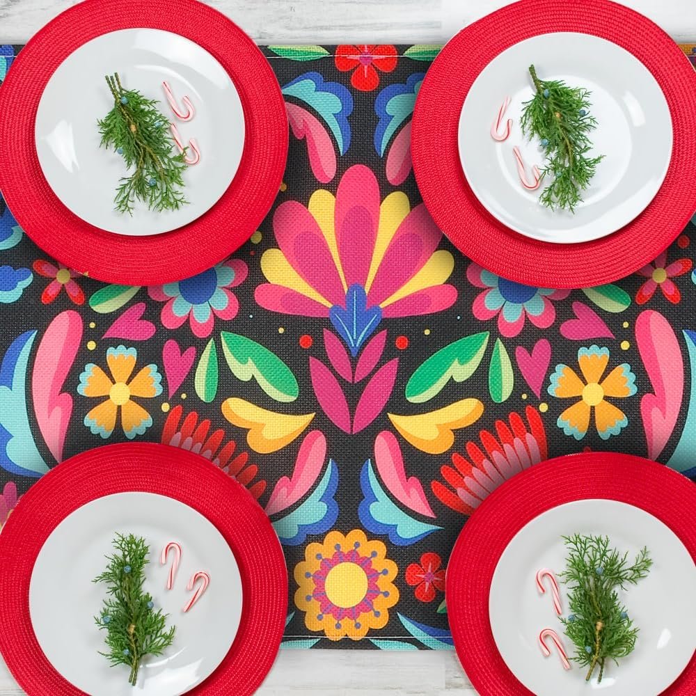 Material: This Mexican table runner is made of polyester, beautifully composed, soft and resistant, which can protect your table from scratches and damage