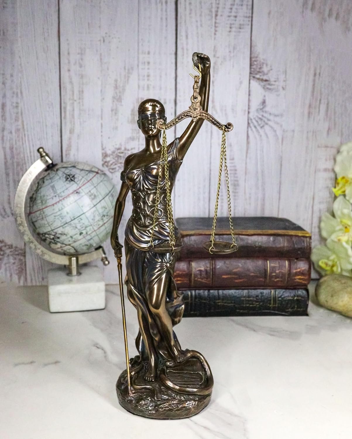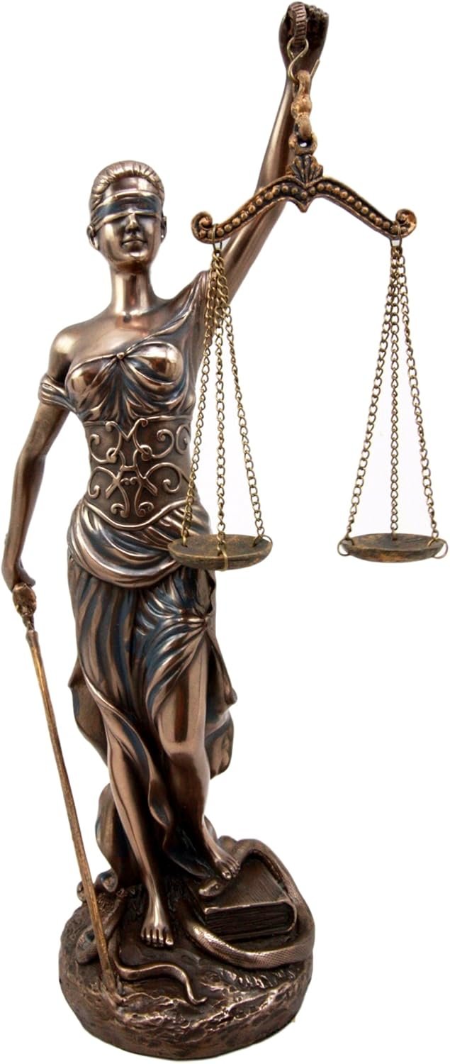 This Lady Justice Figurine is made of designer composite resin mixed with bronze powder, hand painted and polished