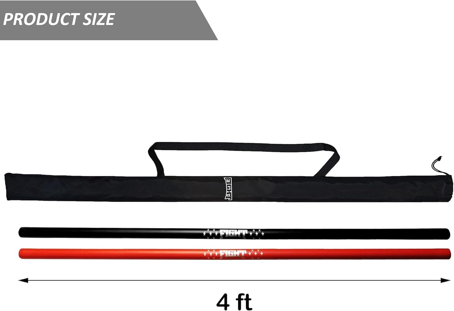 Available in 4 foot Bo Staff. 1/4″ of foam surrounds a plastic tube for a total diameter of 1-3/4″. Each order set includes 2 Bo staffs a free carry bag. Excellent for light practice or beginning kata training.